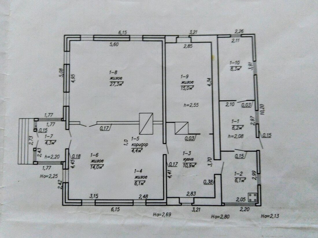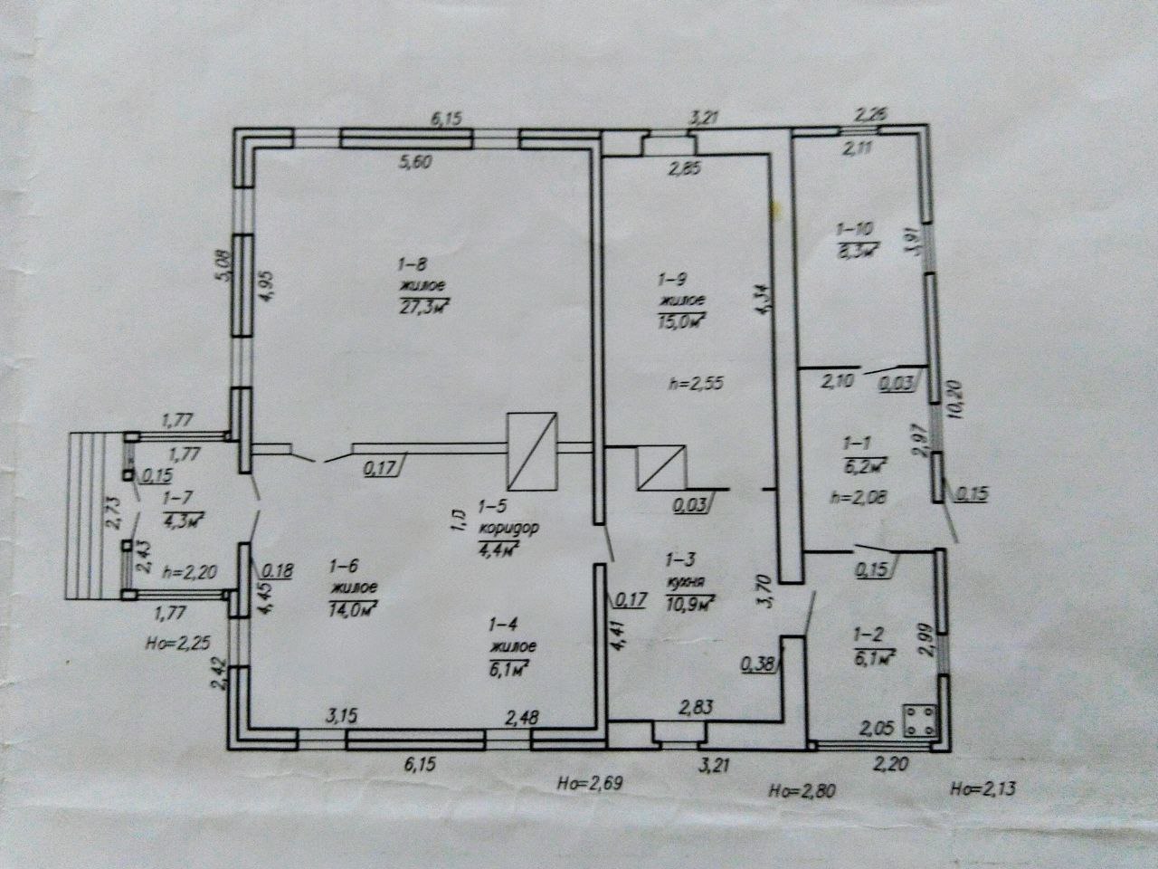 В доме три жилые комнаты: одна на 27 квадратов, вторая — 25, третья — 15. Плюс кухня 11 квадратов. Есть техпомещения с кладовкой и котельной, которые, утеплив, можно перепрофилировать под санузел. Отметим, что в техпомещениях, на кухне и в комнате на 15 квадратов уже сделана стяжка.