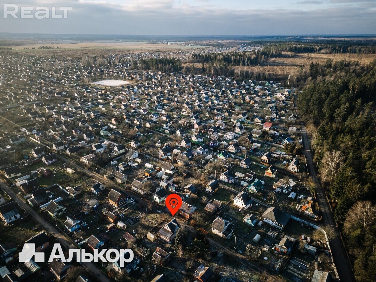 Располагается дом в садовом товариществе «Шарик» Пуховичского района. Это — 35 километров от МКАД, Гомельское направление.