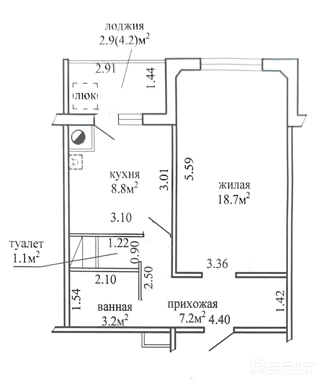 Следующее предложение — аналогичная по планировке однокомнатная квартира, но без отделки. Это жилье располагается на десятом этаже дома. Общая площадь однушки составляет 42 квадратных метра. Окна квартиры выходят во двор. Жилье предлагается без отделки. В однушке — раздельный санузел. Стоимость — 69,9 тысячи долларов (1664 доллара — за метр).