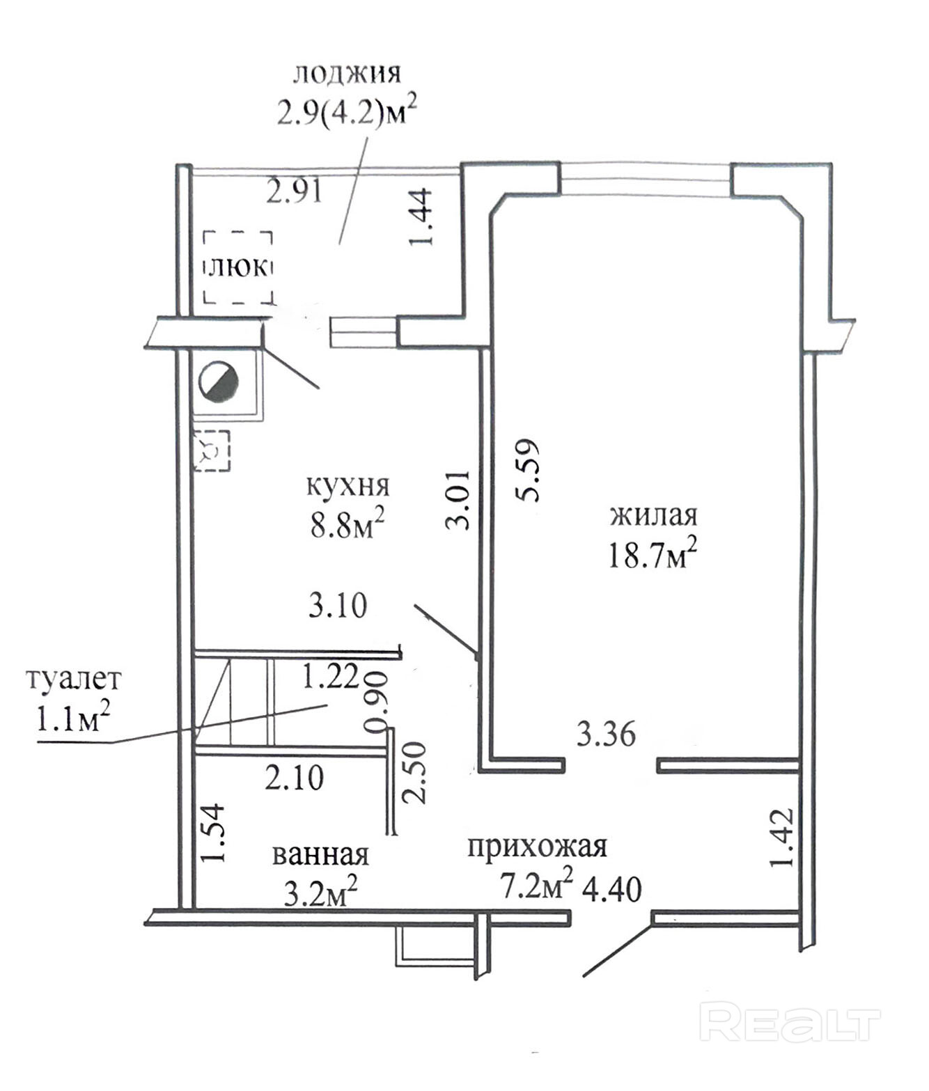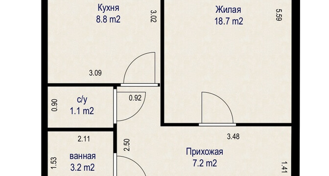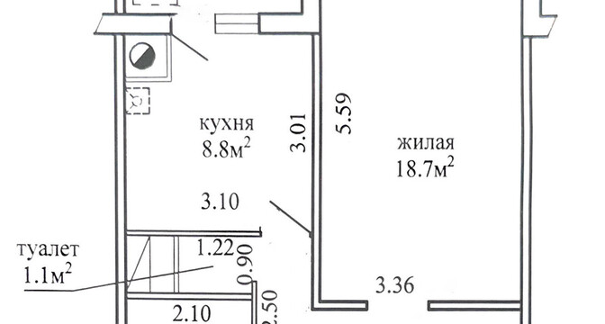 Первый вариант — однокомнатная квартира с ремонтом. Жилье расположено на шестом этаже дома. Общая площадь квартиры составляет почти 42 квадратных метра. Квартира состоит из 8-ми метровой кухни и 18-ти метровой комнаты. В квартире — большие окна, южная сторона. Потолки в квартире натяжные, на стенах — обои, на полу — ламинат и плитка. Стоимость — 84 тысячи долларов (2005 долларов — за метр).