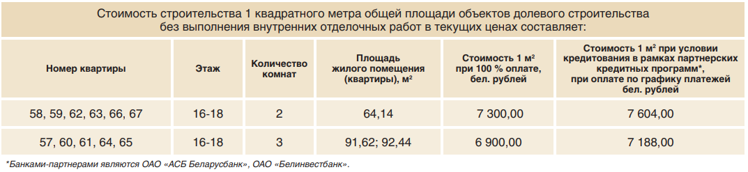— 6 двухкомнатных общей площадью 64 квадрата по стоимости 7300 рублей (2540 долларов) за метр;