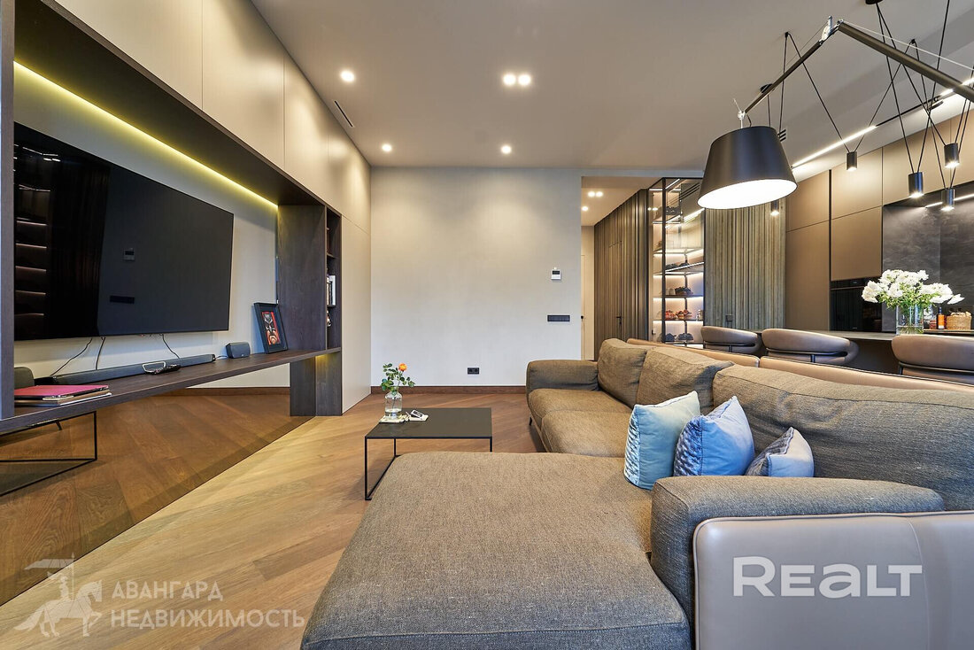 В квартире установили систему «умный дом», приточно-вытяжную систему вентиляции и кондиционирование. На полу паркетное покрытие.