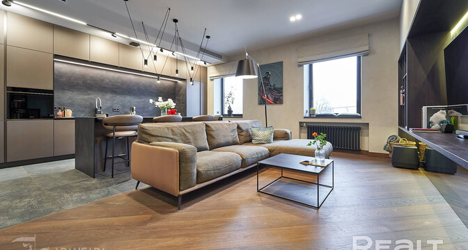 В пятиэтажном доме на улице Энгельса выставили на продажу двухкомнатную квартиру с современным ремонтом. В квартире сочетаются трехметровые потолки сталинки и система «умный дом», аутентичный балкон и современный интерьер. Квадрат в этой квартире оценили почти в пять тысяч долларов. Рассмотри двушку подробнее.