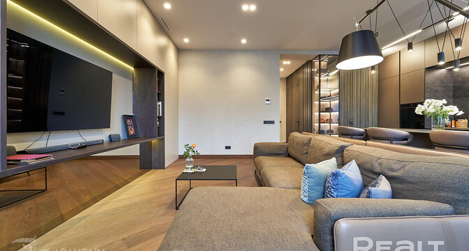 В квартире установили систему «умный дом», приточно-вытяжную систему вентиляции и кондиционирование. На полу паркетное покрытие.