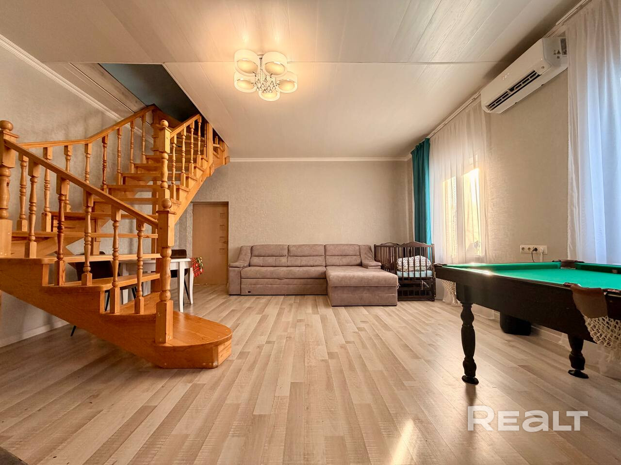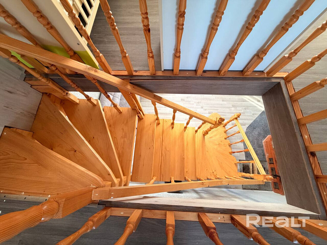 На мансардный этаж ведет удобная деревянная лестница. Наверху находится просторное светлое пространство с оригинальной отделкой стен (ламинатом). Второй этаж подходит для еще одной гостиной, мастер-спальни, кабинета или игровой комнаты.