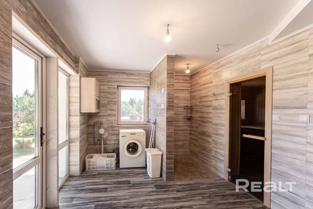 В другой части дом находятся подсобное помещение, большой санузел с душем и сауной.