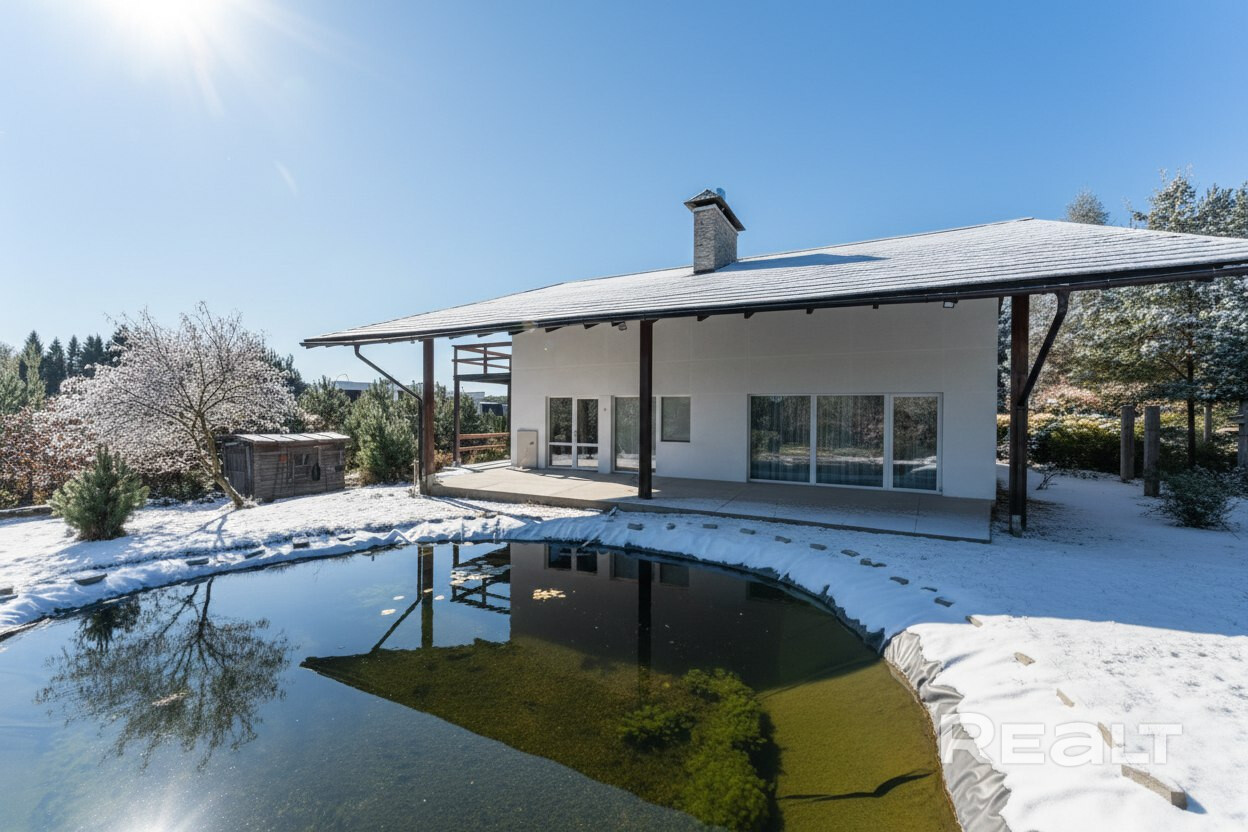 В 13 километрах от Минска продается стильный дом с панорамными окнами, выходящими на свой пруд с форелью и сосны. В нем есть все необходимое для загородной жизни: чистовая отделка, мебель и и бытовая техника, гараж, сауна и террасы. Узнали цену.