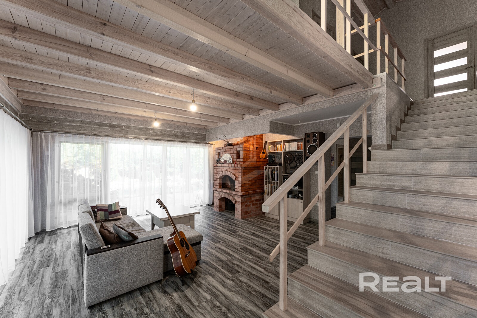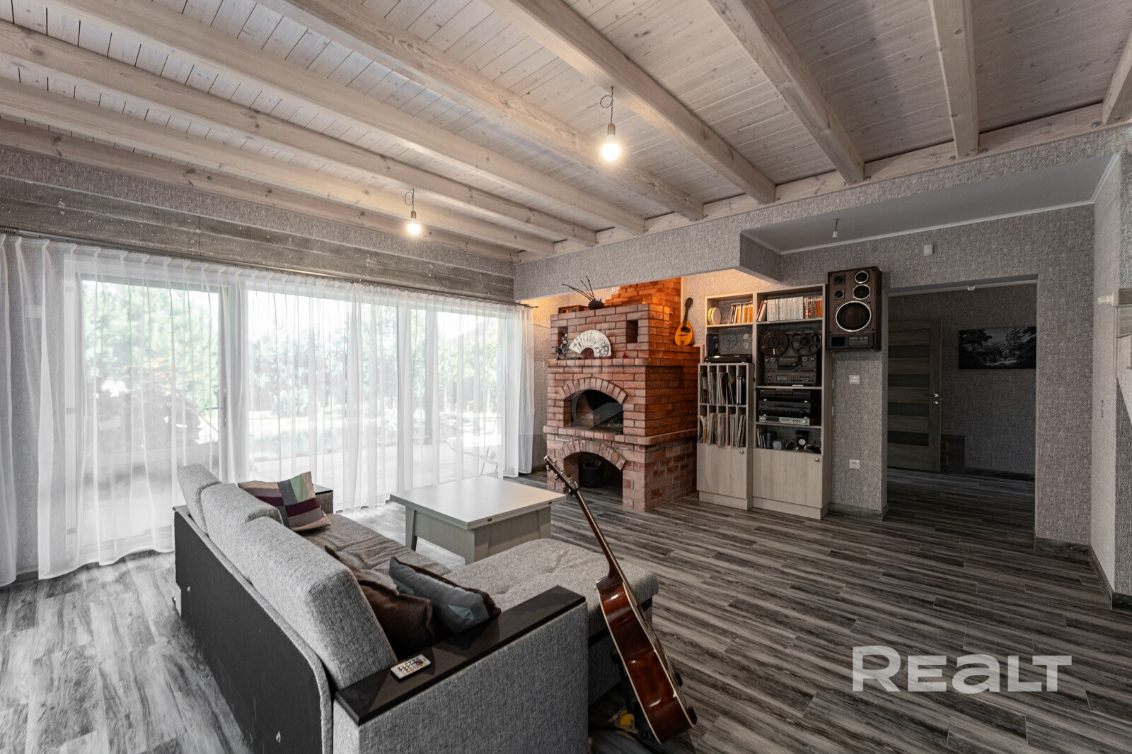 Сауна, камин и вид на пруд с форелью. В 13 км от Минска продается дом с отделкой