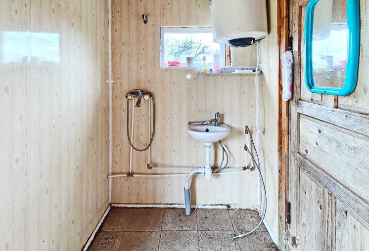 Вода заведена в дом — подается насосом из колодца во дворе. Удобства во дворе, но при желании теплый санузел можно оборудовать и внутри деревянной хозяйственной пристройки.