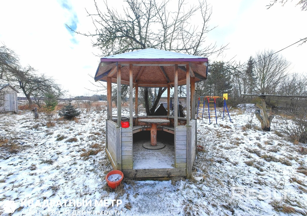 Новому владельцу явно захочется продолжить благоустраивать территорию — судя по фото, в осень участок ушел не покошенным. Впрочем ему не придется начинать с нуля и бороться с дикими зарослями. Во дворе растут взрослые яблони и груши, смородина и сирень.