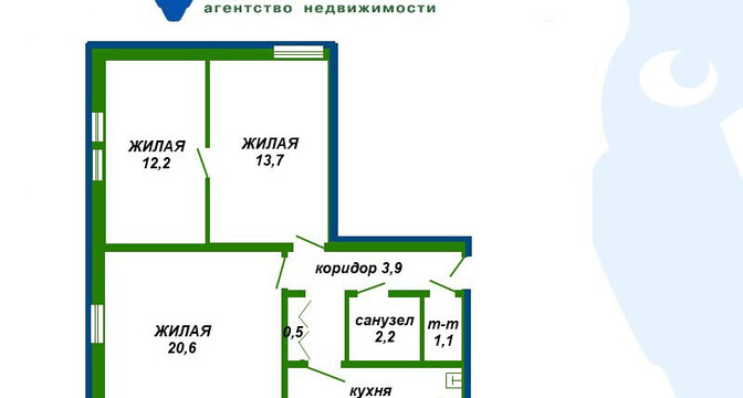 Общий метраж квартиры — 44 квадрата. Жилая площадь — 22 квадрата, кухня — 7 квадратов.