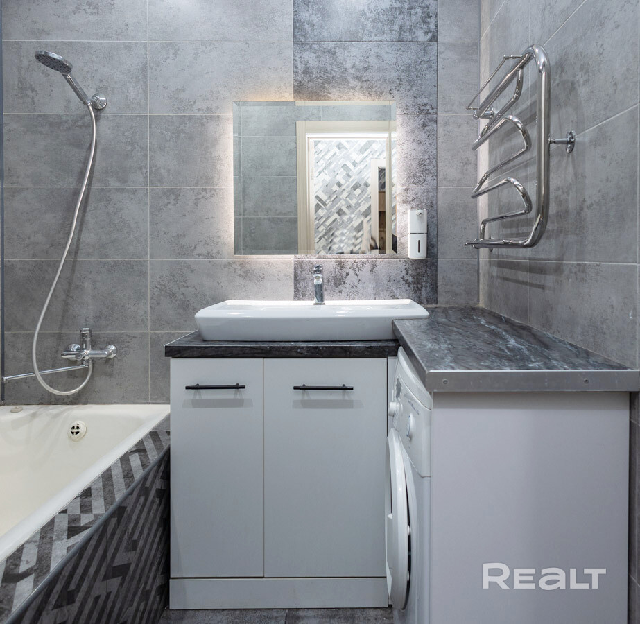 В совмещенном санузле установлена ванна и подключена стиральная машина.