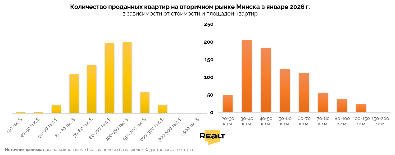 А в целом за январь, квартир площадью до 25 кв.м. было продано 8 штук, большая часть из которых находилась в ЖК «Минск-Мир», а их стоимость варьировалась от 61 000 $ до 75 000 $.
