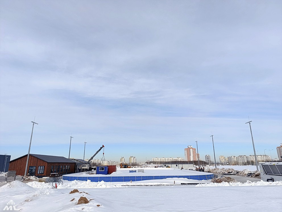 Рядом с хоккейной площадкой построен павильон проката, в работе павильон для кафе. В новой ТП монтируют оборудование.