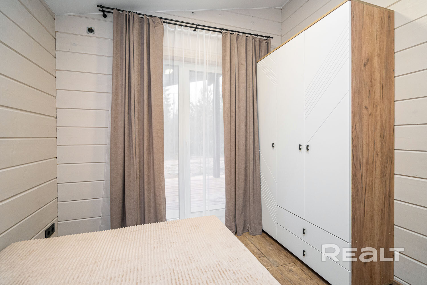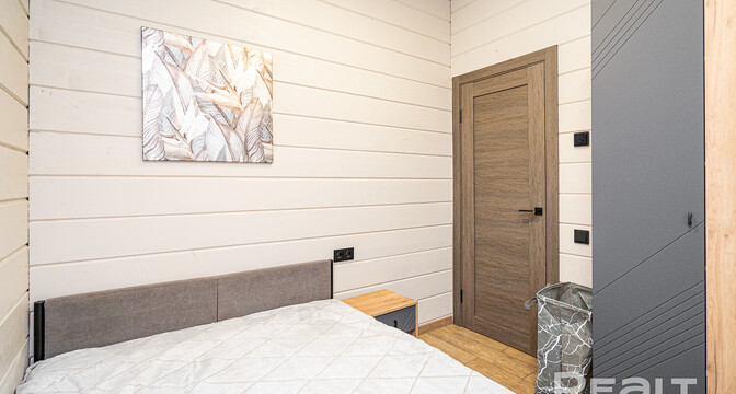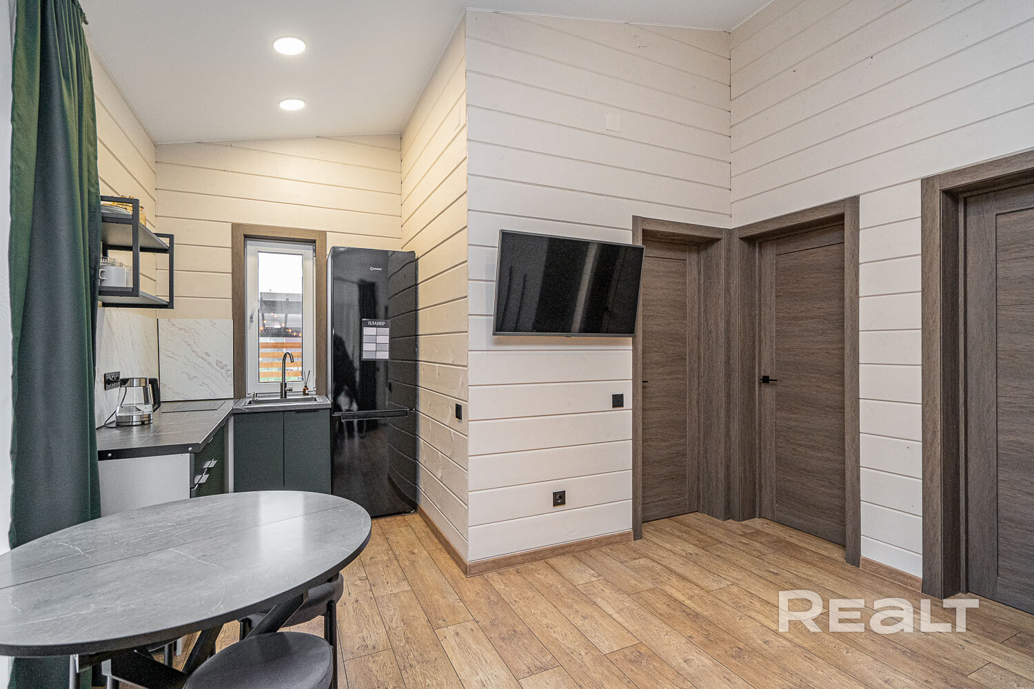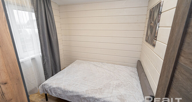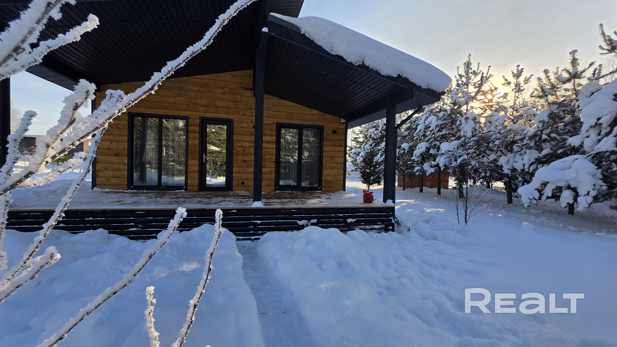 Расположился дом в СТ «Ручеек» в Минском районе. Его построили в 2025 году в 40,8 м². Внутри стены отделаны деревом, в окнах стоят стеклопакеты.