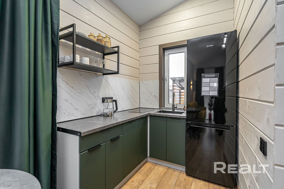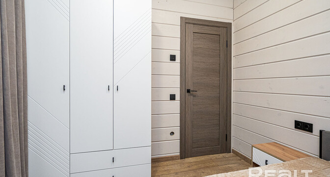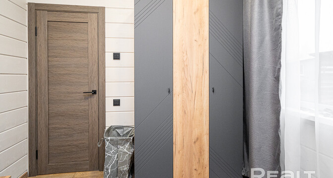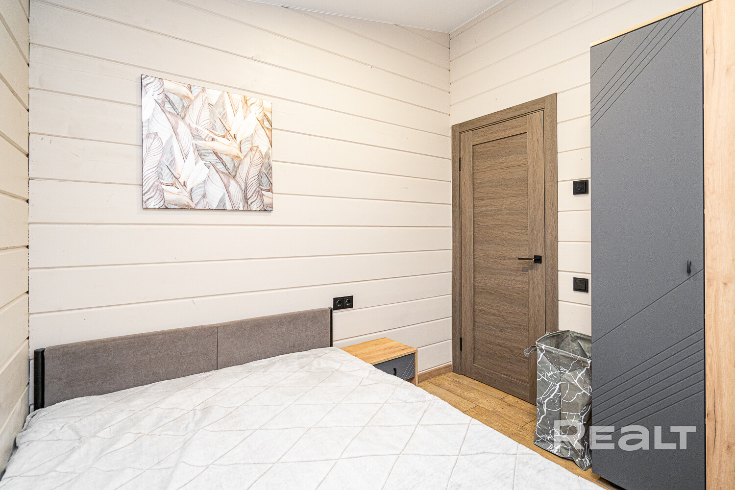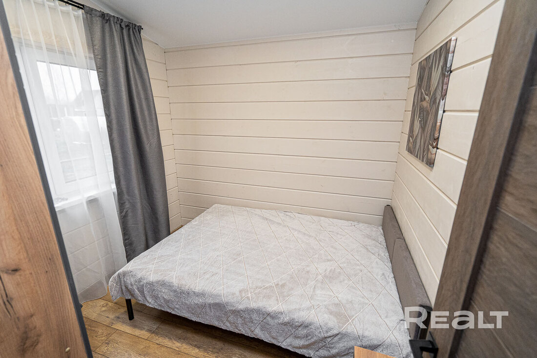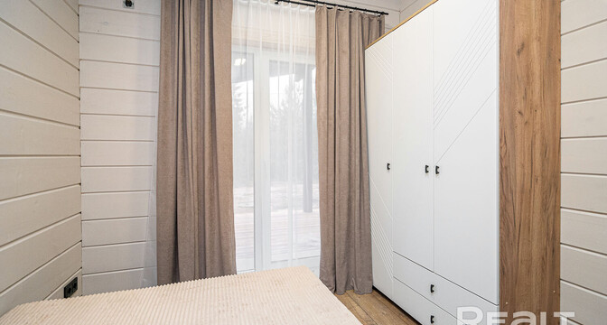 Расположился дом в СТ «Ручеек» в Минском районе. Его построили в 2025 году в 40,8 м². Внутри стены отделаны деревом, в окнах стоят стеклопакеты.
