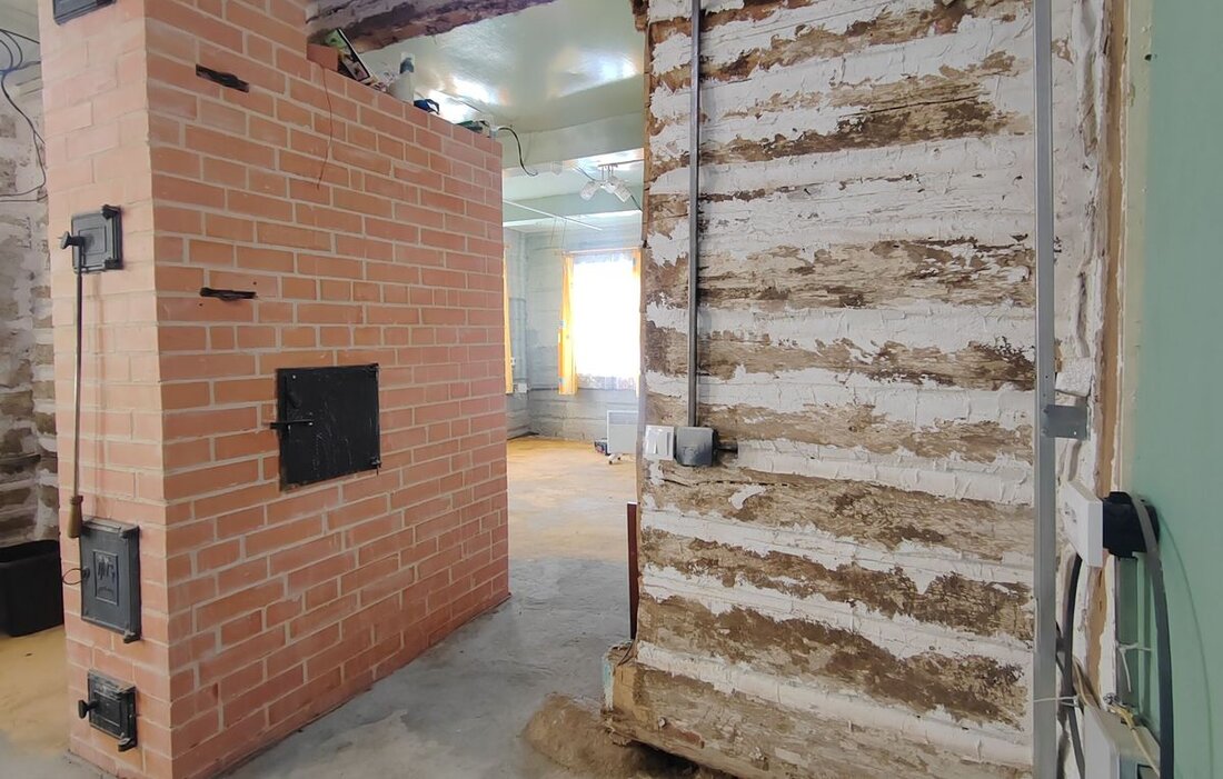 Общая площадь не указана, но, судя по фото, в планировке имеются кухня, общая комната, спальня, прихожая, помещение под санузел. Внутри все подготовлено для чистовой отделки, сложена новая печь.