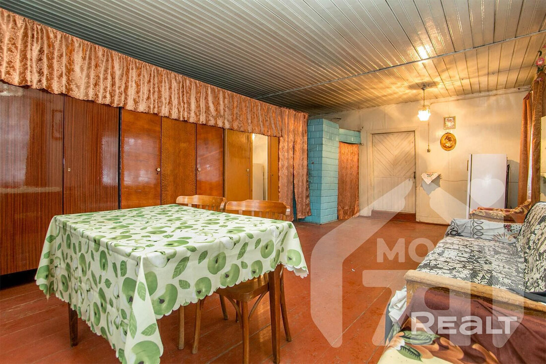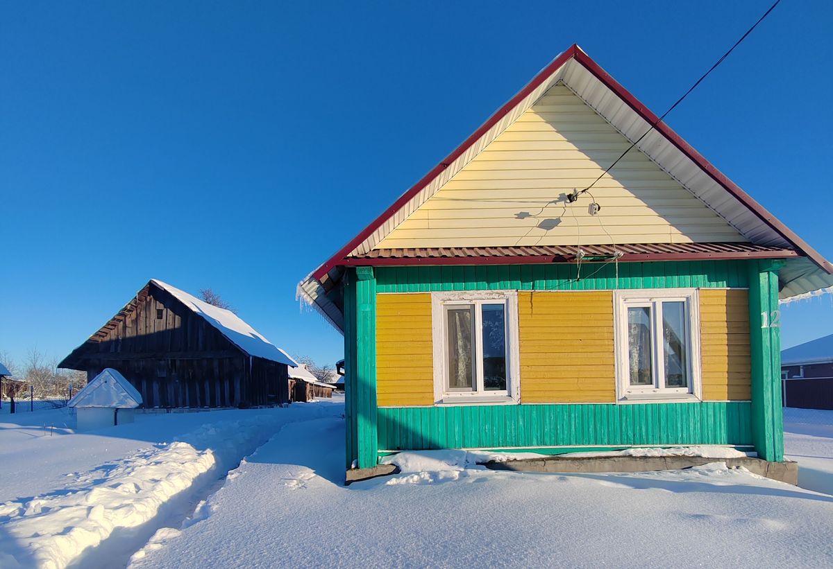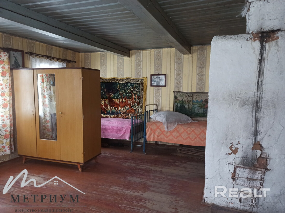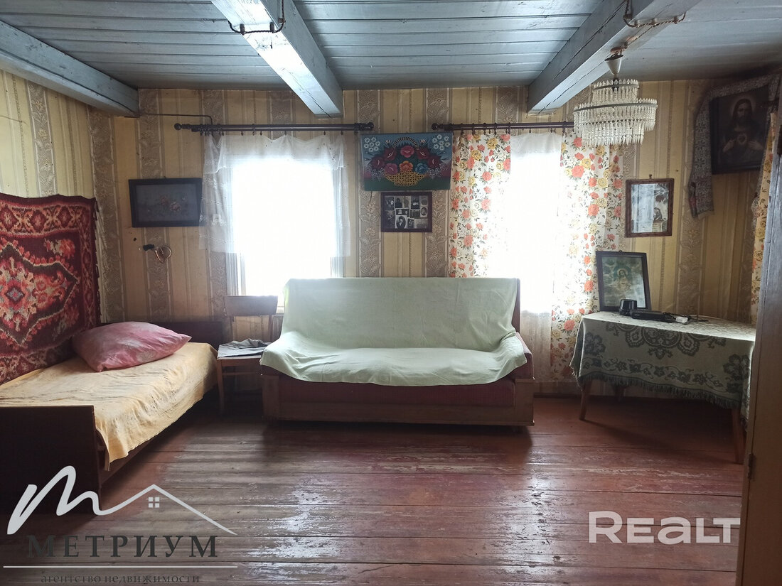 Здесь продается просторный дом 1965 года. Общая площадь – 60,6 м2. Пространство поделено на три части: большая жилая комната, столовая и кухня. Внутри крепкие дощатые полы, потолок покрашен, на стенах обои. Дом ухожен и не требует срочных переделок.