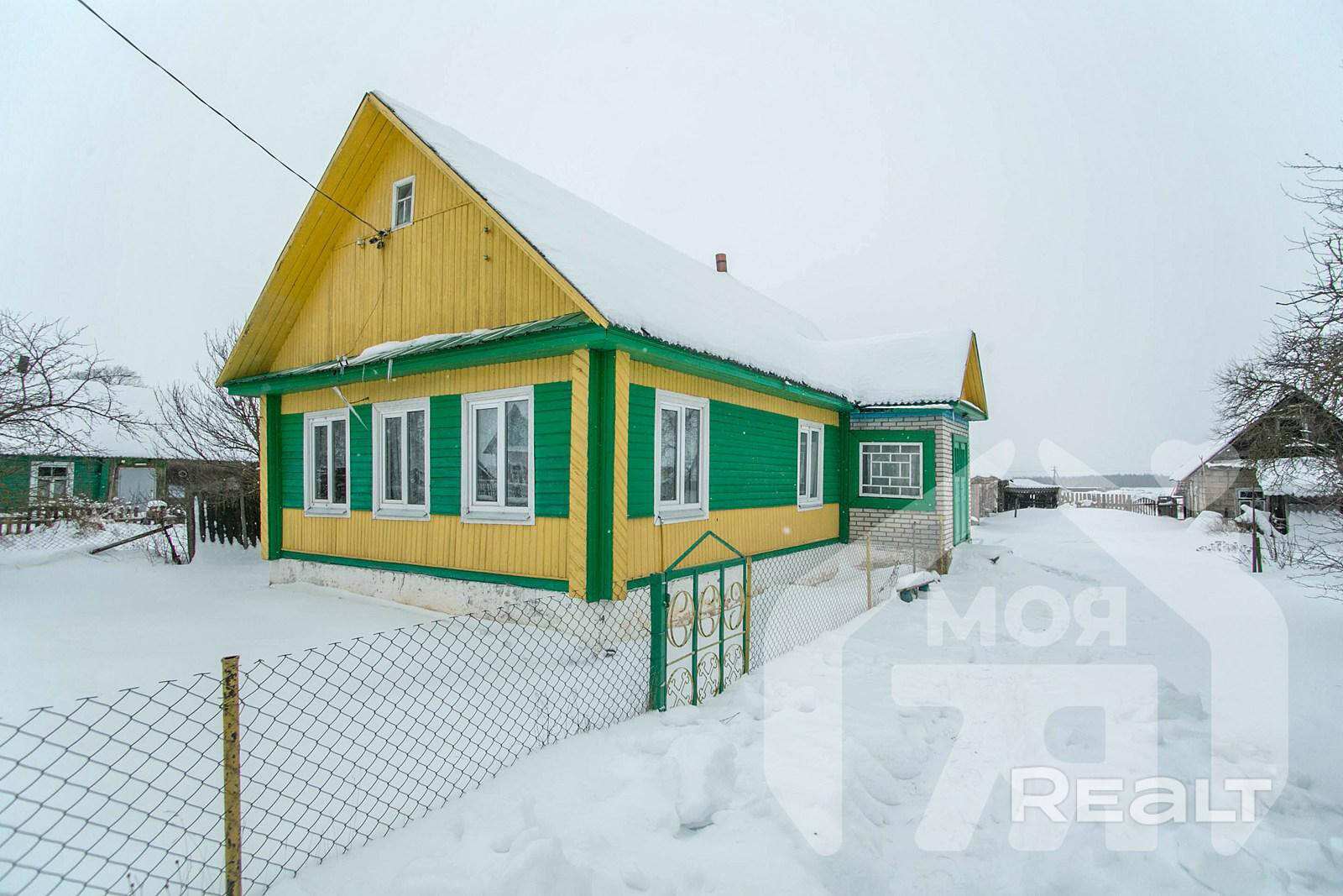 Дом здесь деревянный, с шиферной крышей и современными окнами ПВХ.