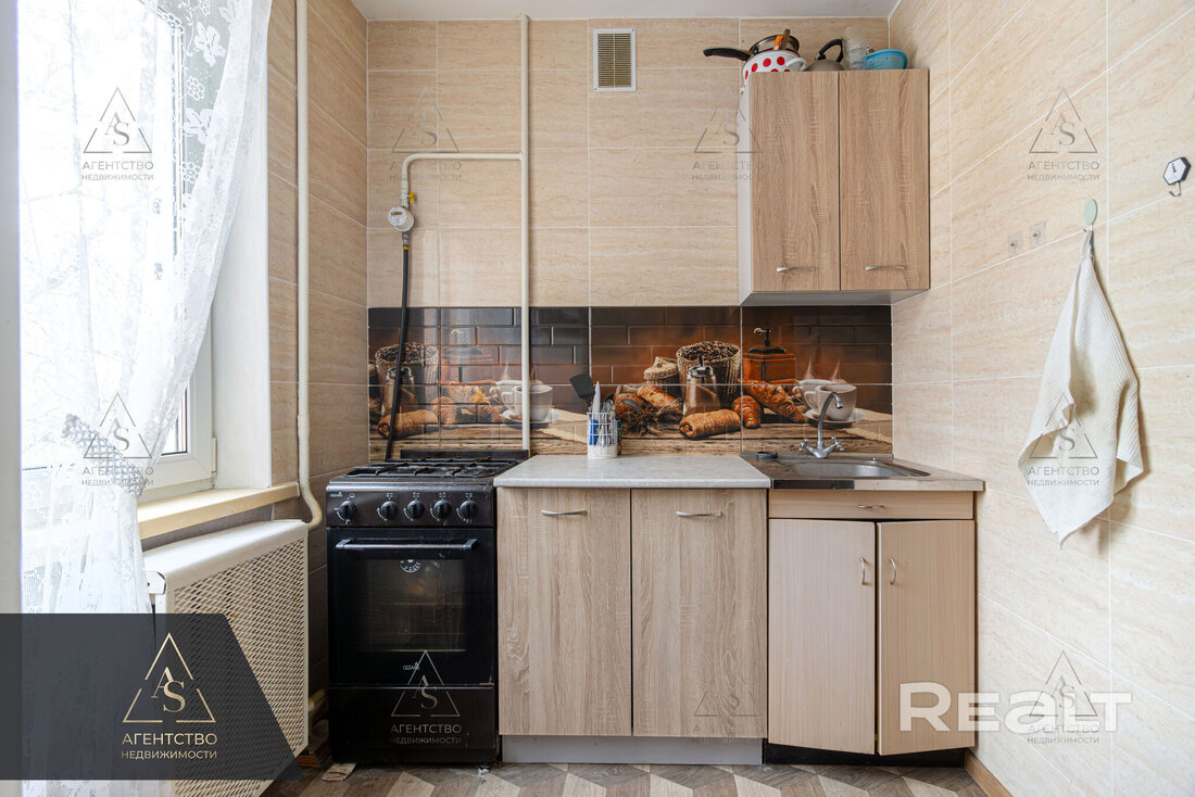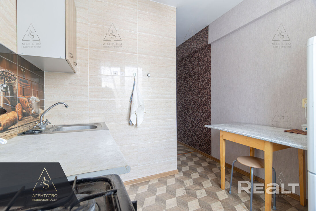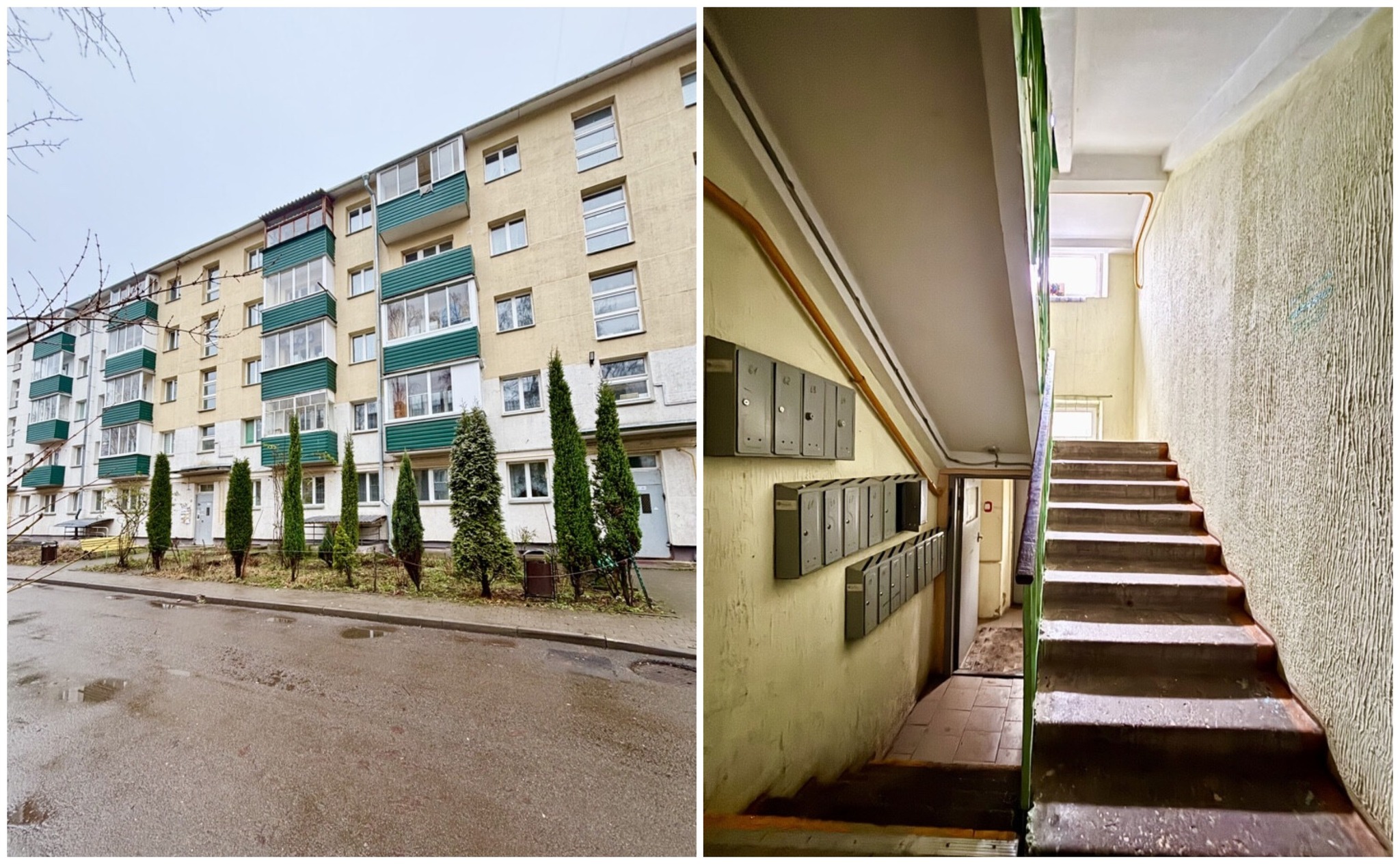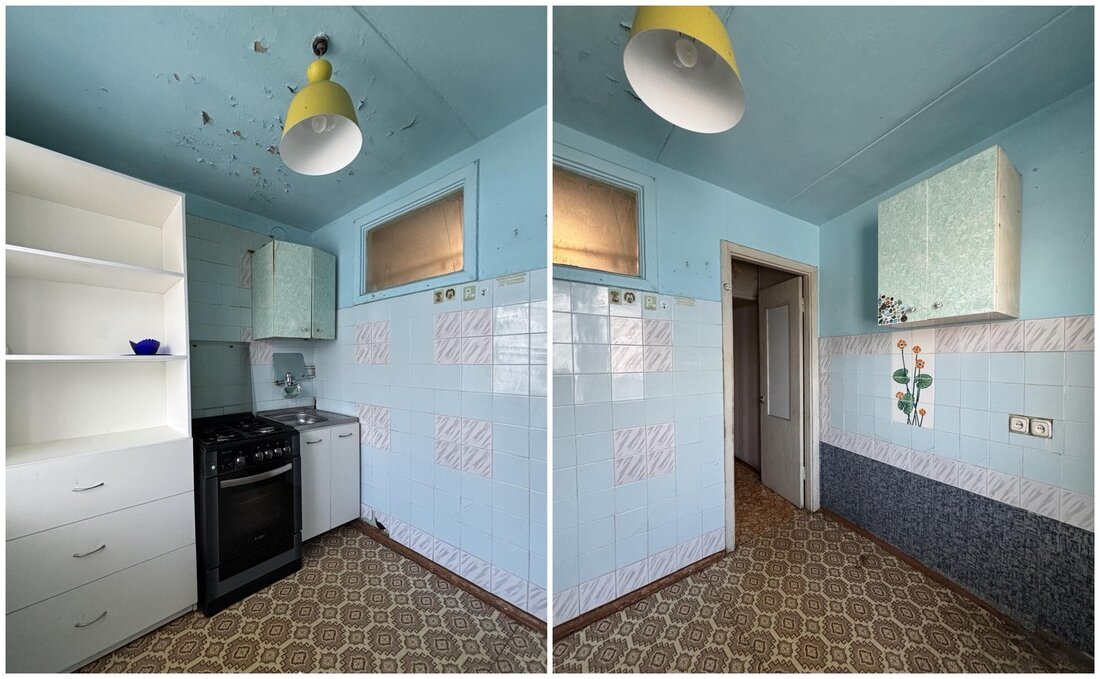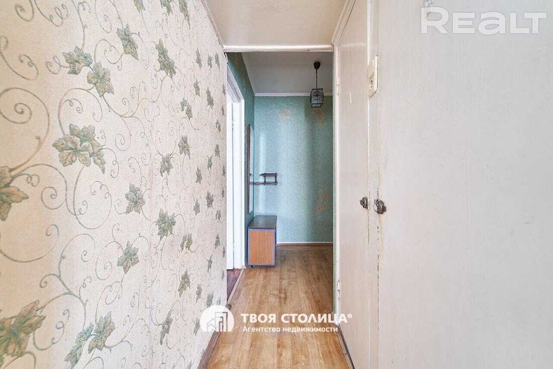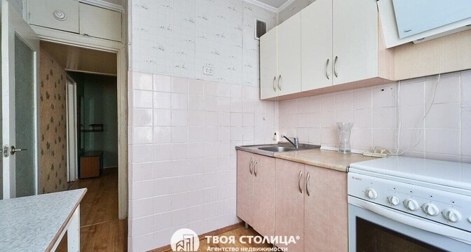 Пятиэтажка на Берута, 9/3 была построена в 1967 году. Капремонт прошел в 2012-м. На первом этаже выставлена на продажу квартира в 50 квадратных метров. Кухня занимает 6,04 м².