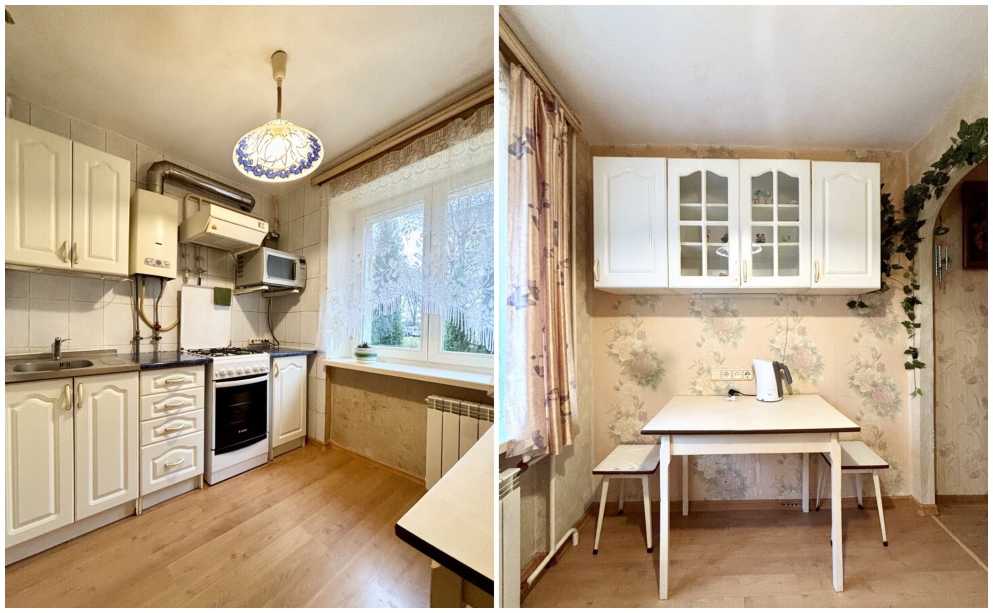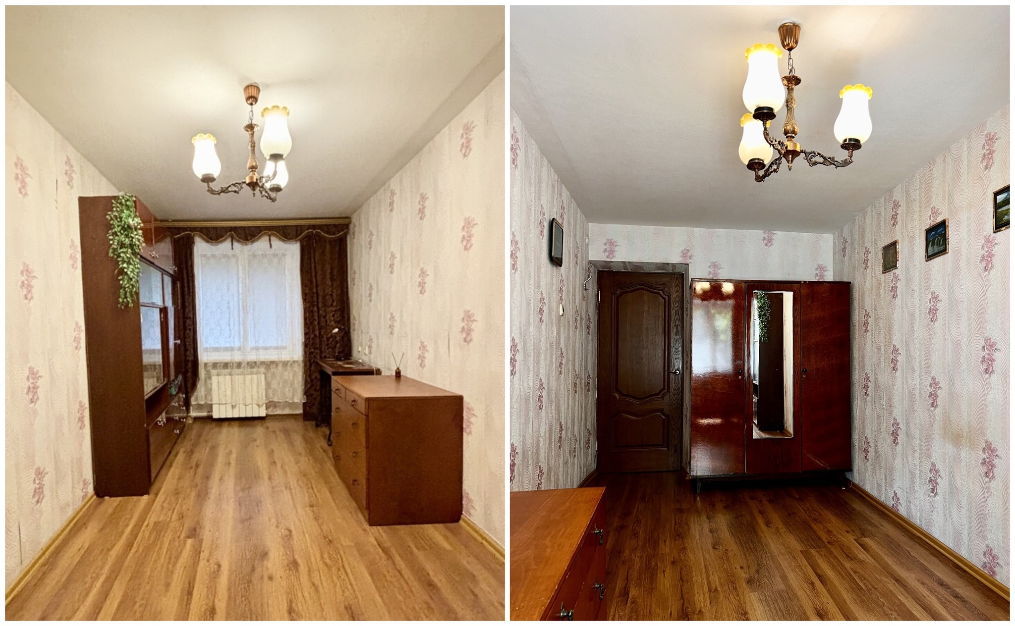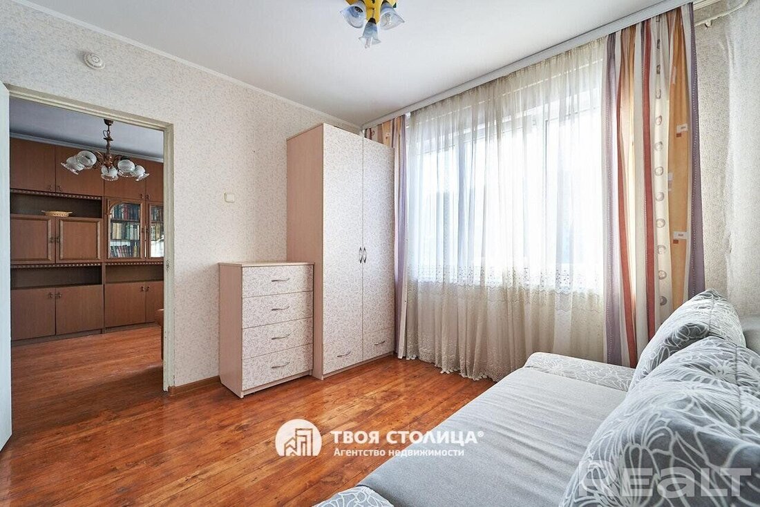 Квартира нуждается в обновлении. Здесь две отдельные комнаты. В окнах стоят стеклопакеты, на полу лежит деревянное покрытие. Балкона тут нет, но имеется подвал для хранения.