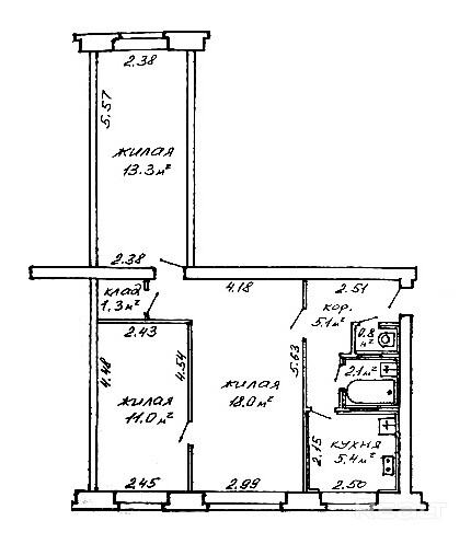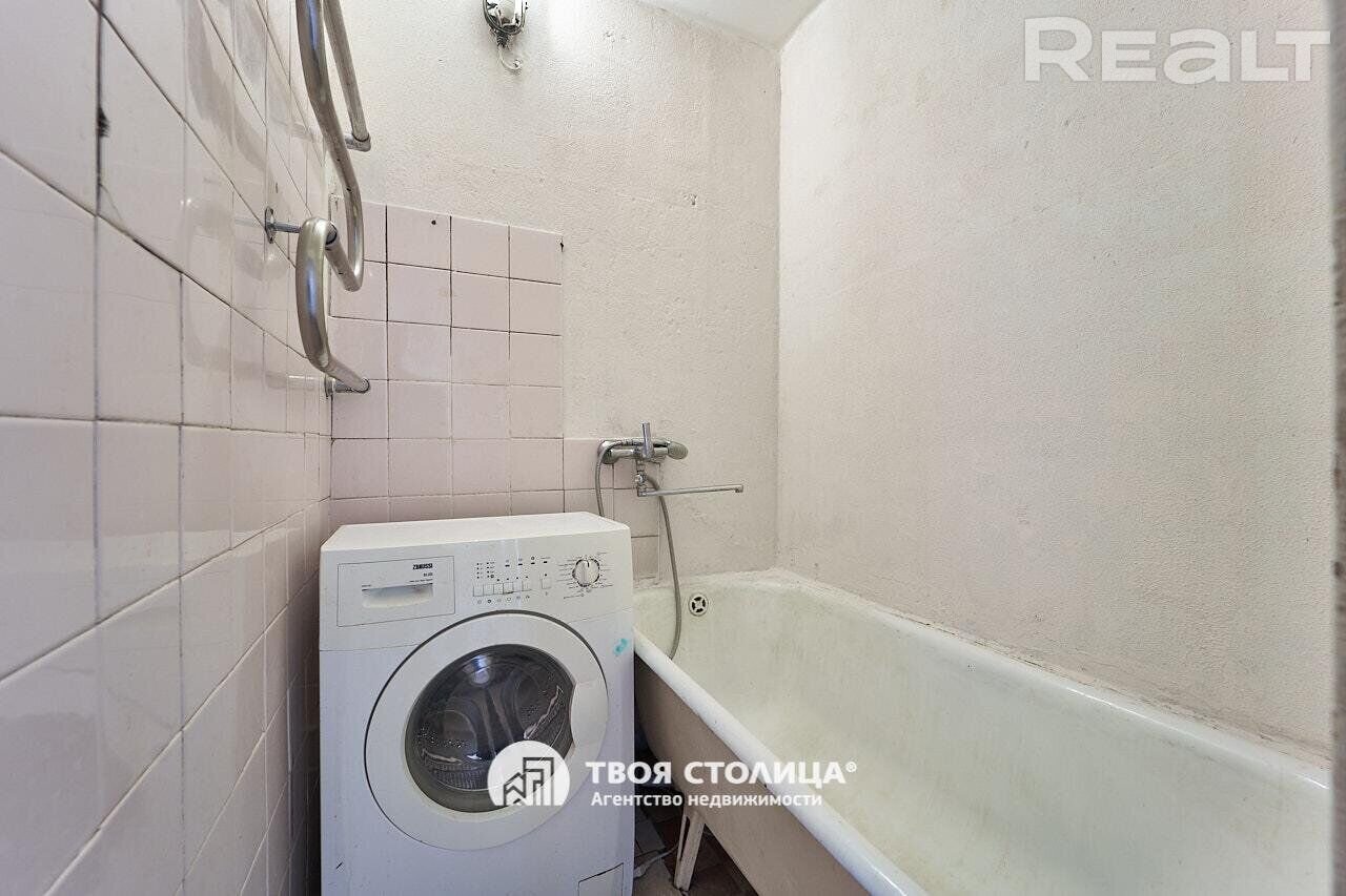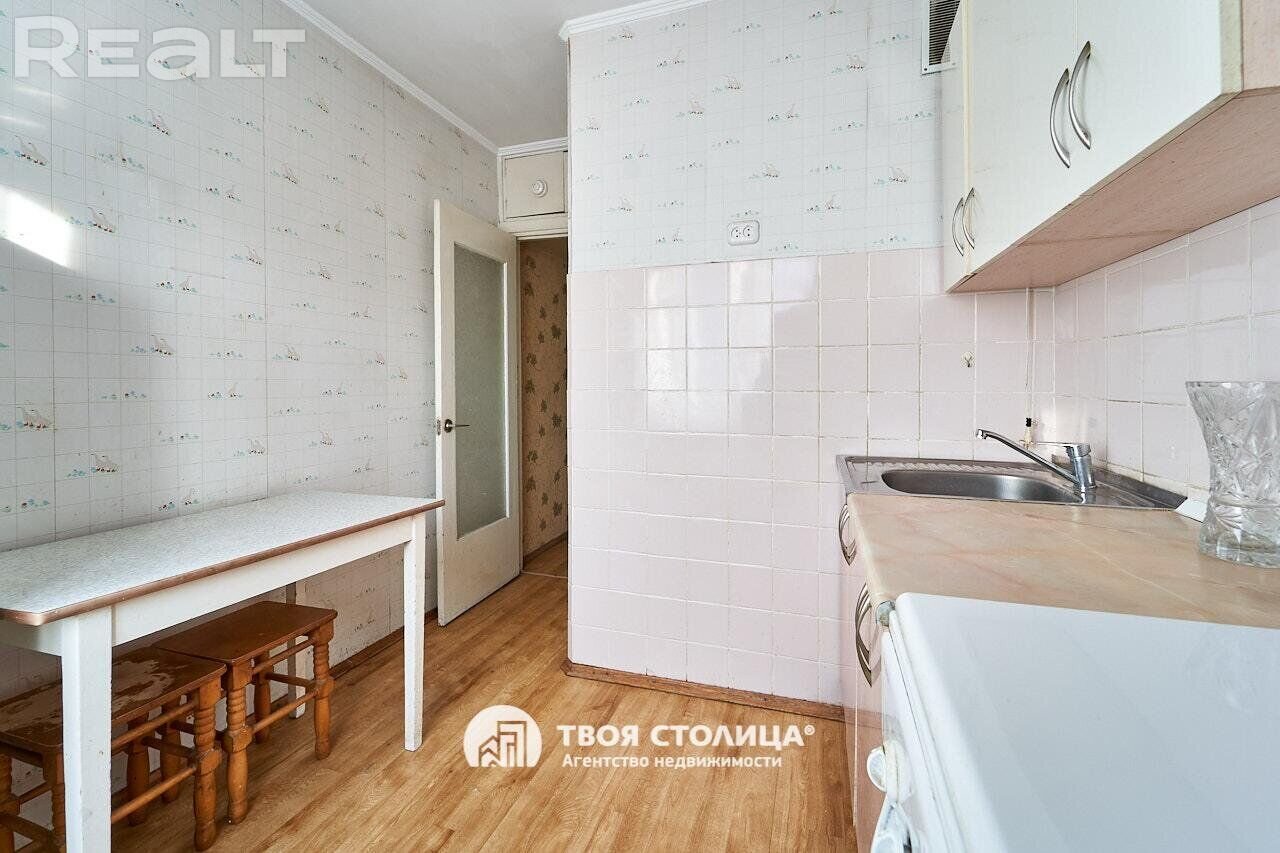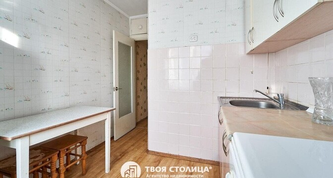 Пятиэтажный дом на улице Пуховичская, 17 построили в 1965 году. Квартира расположилась на первом этаже и занимает 57 квадратных метров. Площадь кухни — 5,4 метра. Дом после капремонта.