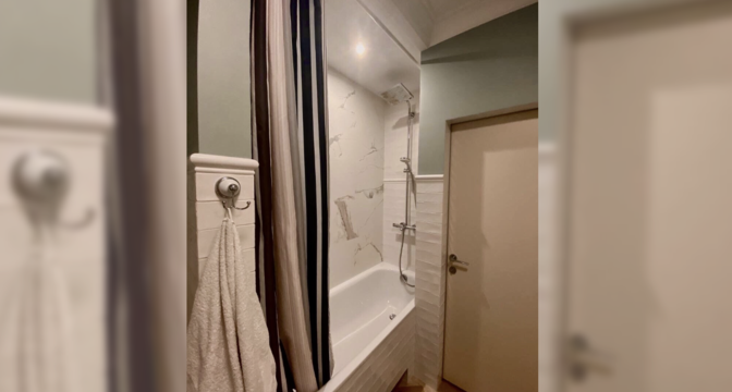 Санузел совмещенный. Установлена ванна с тропическим душем. Еть бойлер и фильтры для воды. Стиральная машина LG с сушкой установлена во встроенном шкафу. Есть две оборудованные гардеробные.