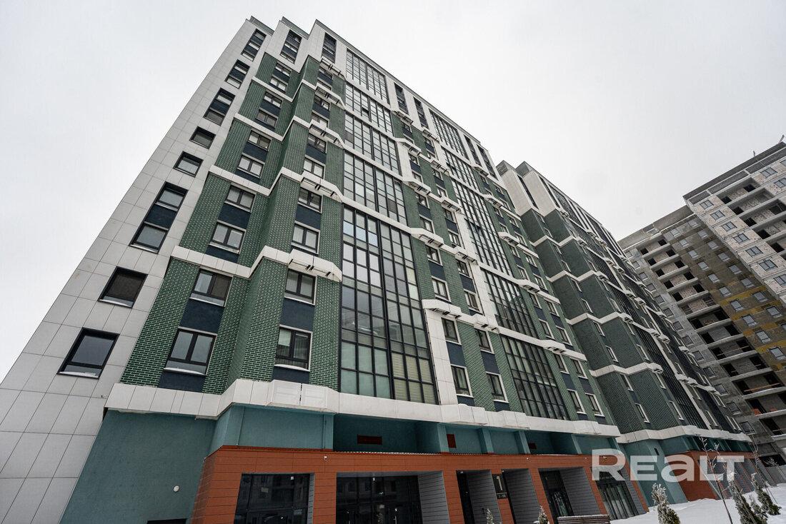 Евродвушка на десятом этаже по адресу Стадионная, 9. Это 13-этажный дом 2017 года постройки рядом с ЖК «Левада» около Свислочи. До реки — меньше километра.