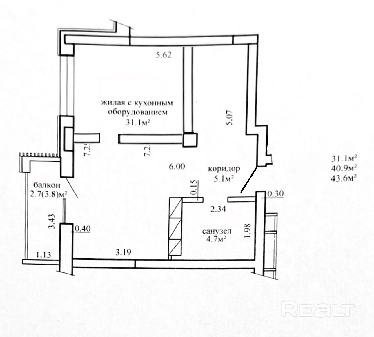 Общая площадь — 41 квадрат.