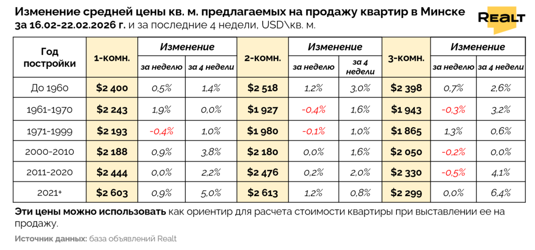 Середина февраля ускорила продажи квартир, отчего итоговый прогноз по сделкам вырос до среднего показателя за прошлый год. На этом фоне Минск‑Мир демонстрирует самый заметный рост стоимости квадрата, вытягивая средние показатели по городу, несмотря на перевес снижений в объявлениях. Подробности и причины — в аналитике Realt.