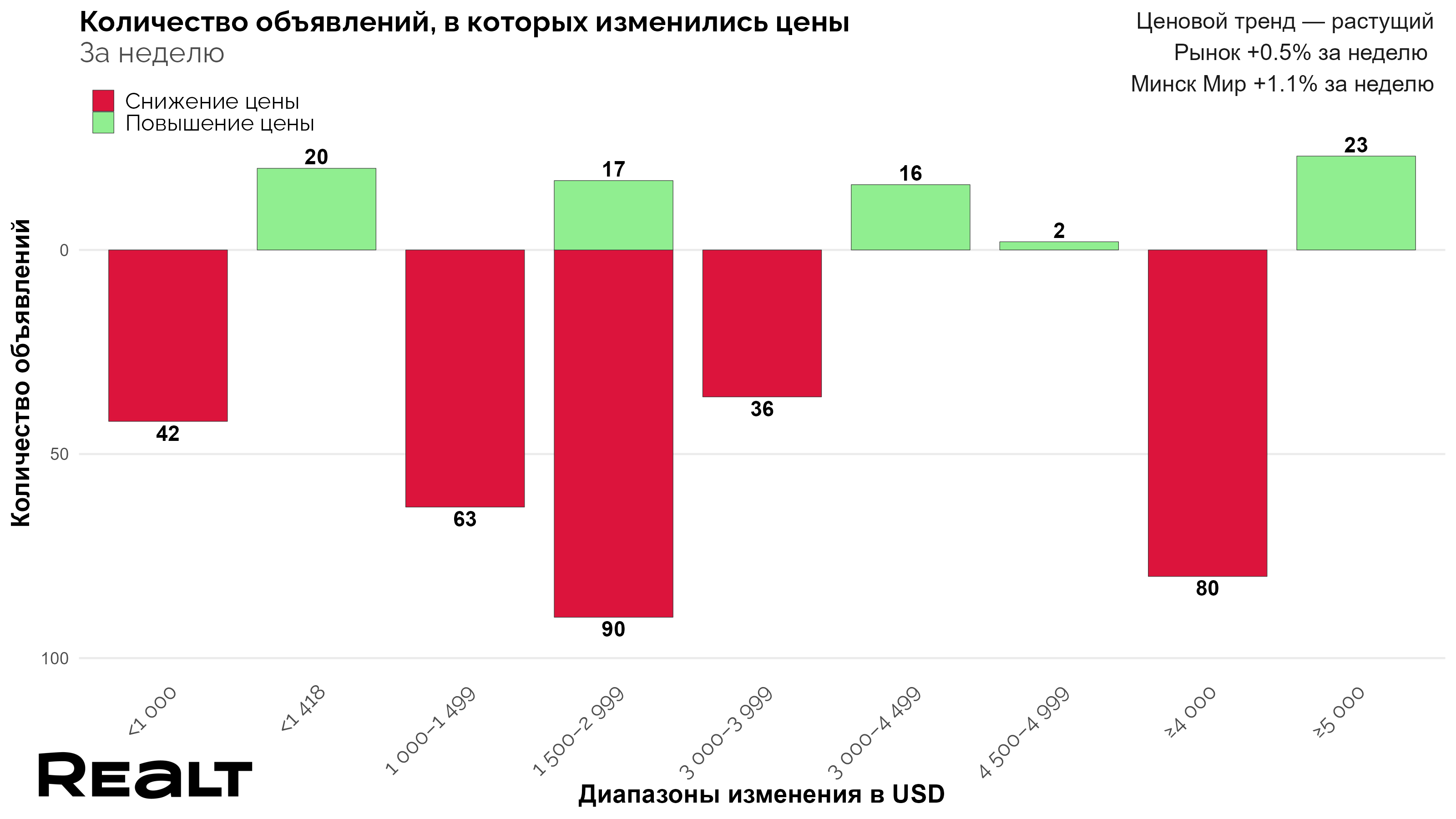продолжают расти, несмотря на то, что из числа размещенных объявлений случаев снижения цены больше, чем ее увеличения. Только увеличивают цену на большую сумму, чем снижают.