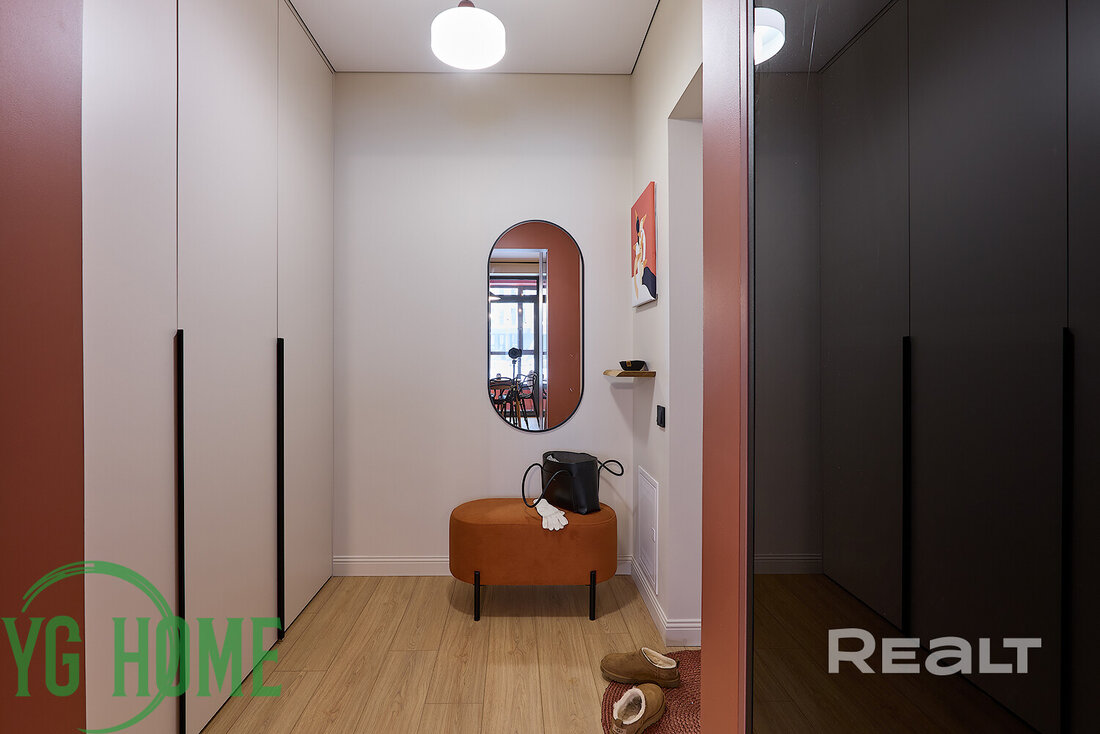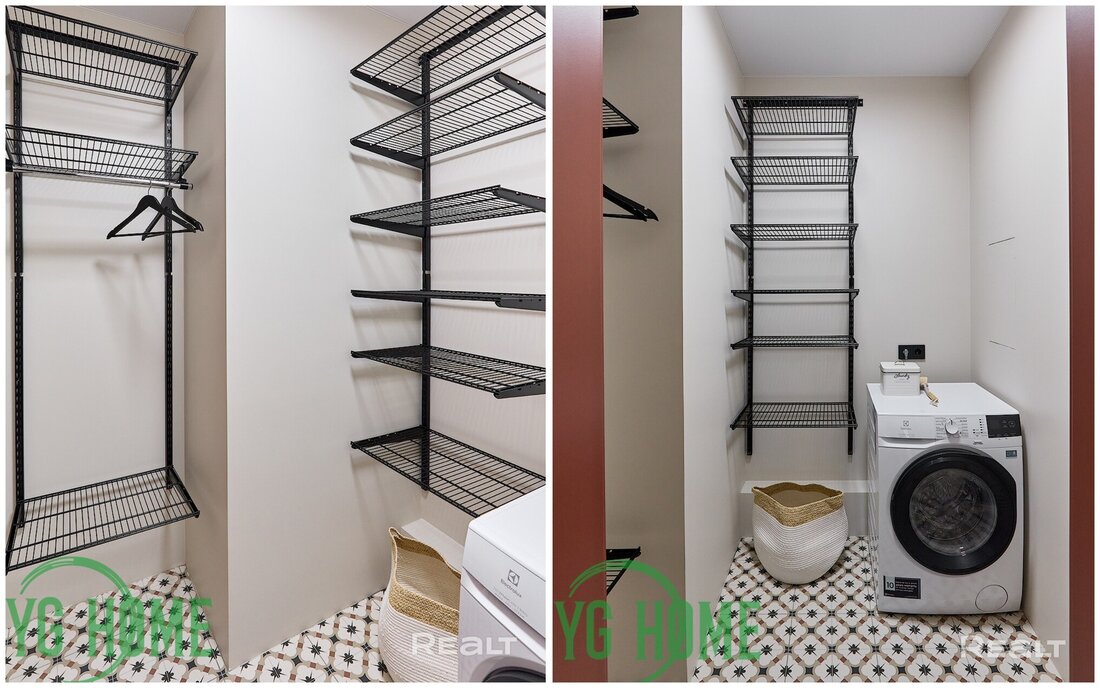Дополнительные места для хранения вещей есть в коридоре, и гардеробной, где разместилась стиральная машина.