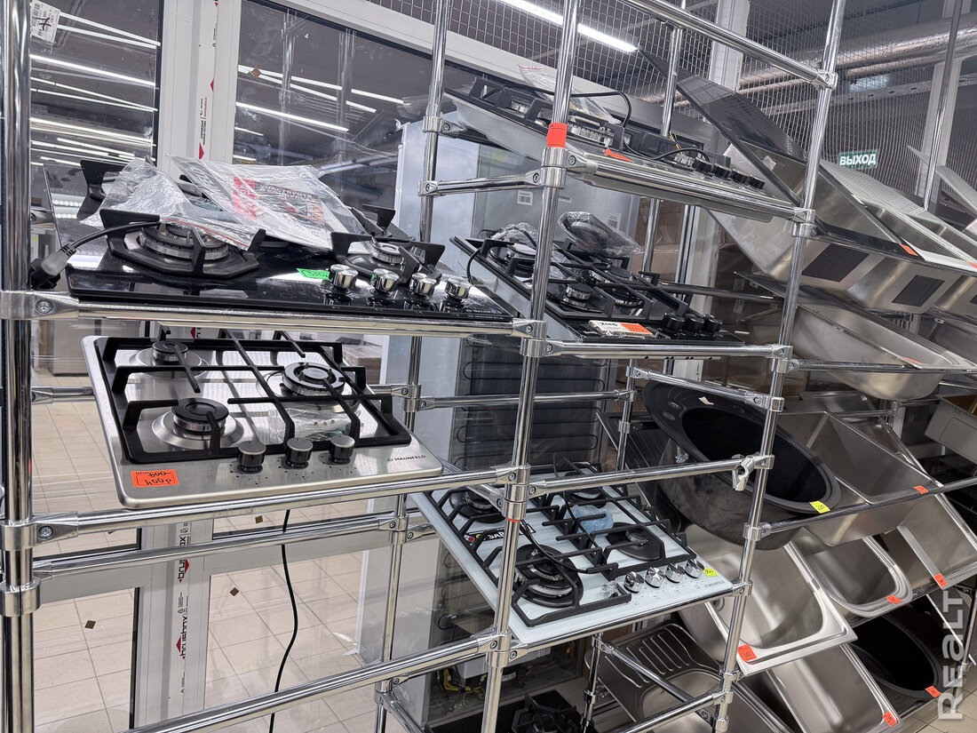 Варочные панели — в основном газовые, от российского бренда Maunfield. Цены, в среднем, от 350 до 500 рублей. За 600 рублей продается газовая плита от чешского бренда Zorg.