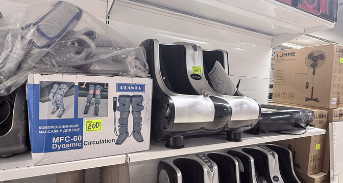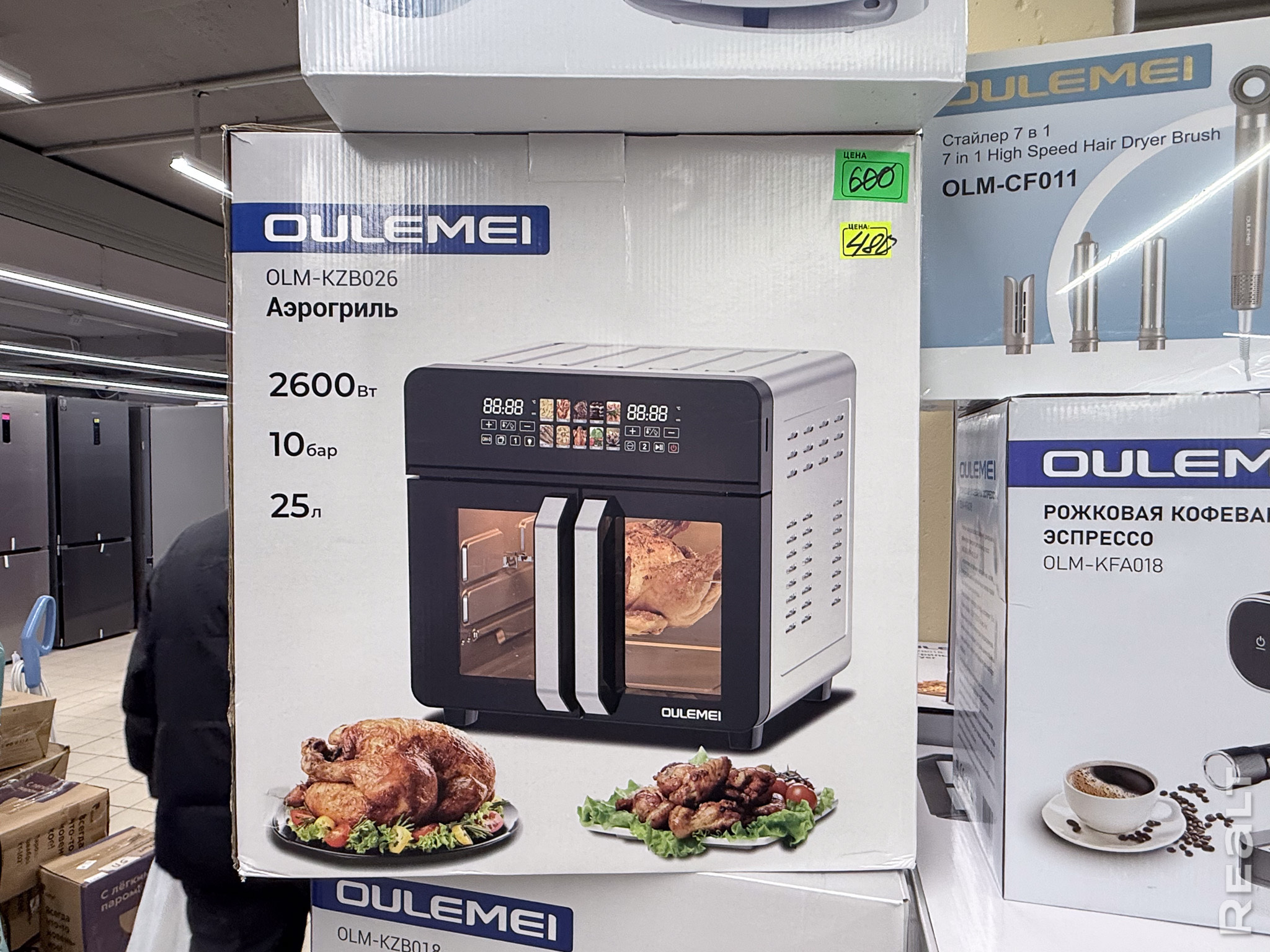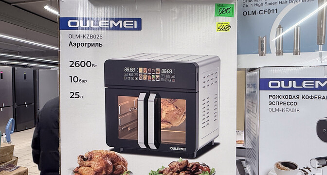 В магазине продаются новые товары, витринные образцы и товары, бывшие в употреблении. Многое — в заводской упаковке. Начнем с позиций, на которые предлагают скидки. Так, например, аэрогрили белорусского бренда Evolution можно купить за 260 и 340 рублей в зависимости от модели. На технику китайского бренда OULEMEI предлагают скидку 20% (от стоимости, по которой раньше продавалась в этом магазине). Есть аэрогрили, рожковые кофеварки, блендеры, утюги, пылесосы.