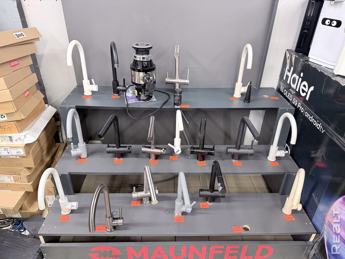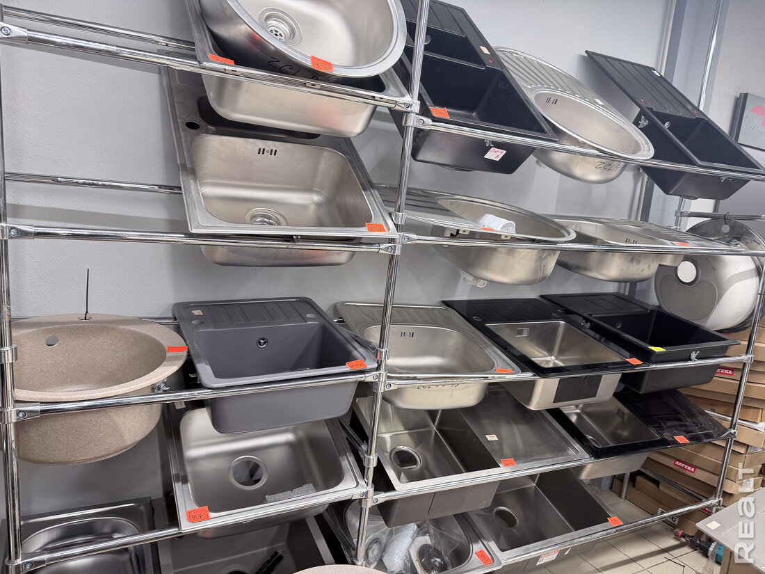 В магазине продается не только техника. Здесь, к примеру, можно купить кухонные мойки и смесители.