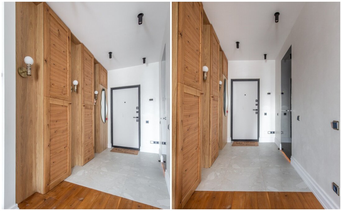В коридоре сделаны шкафы.