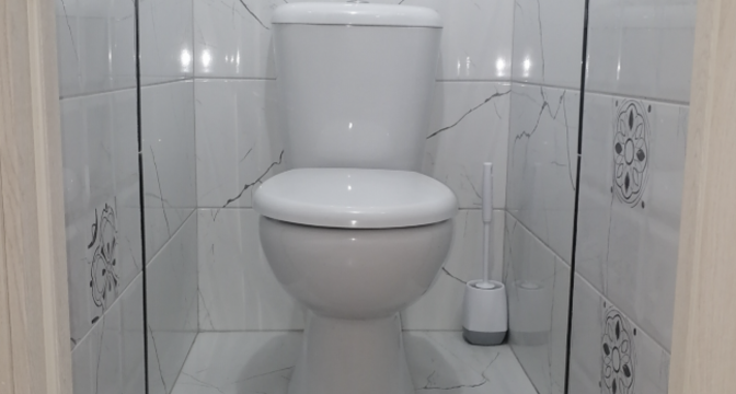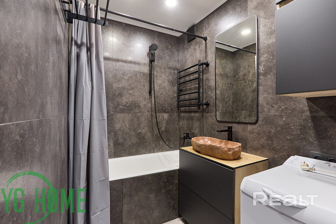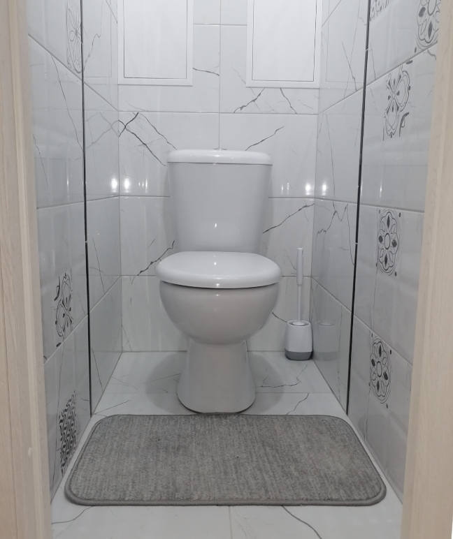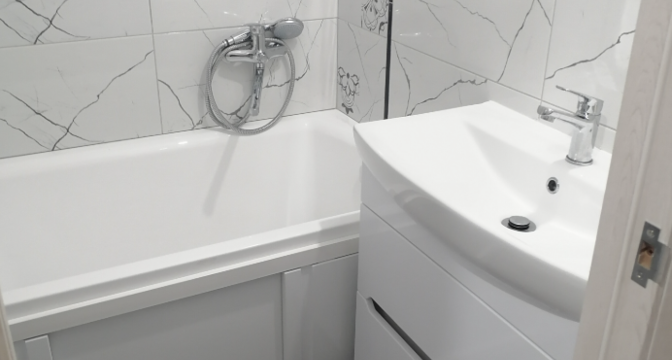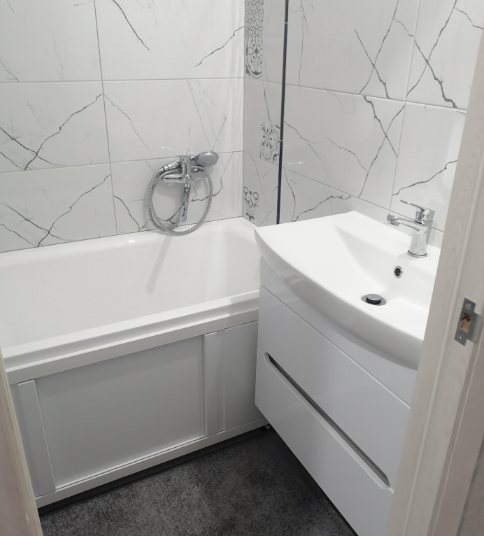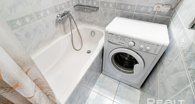 Санузел раздельный. Установлена ванна и подключена стиральная машина.