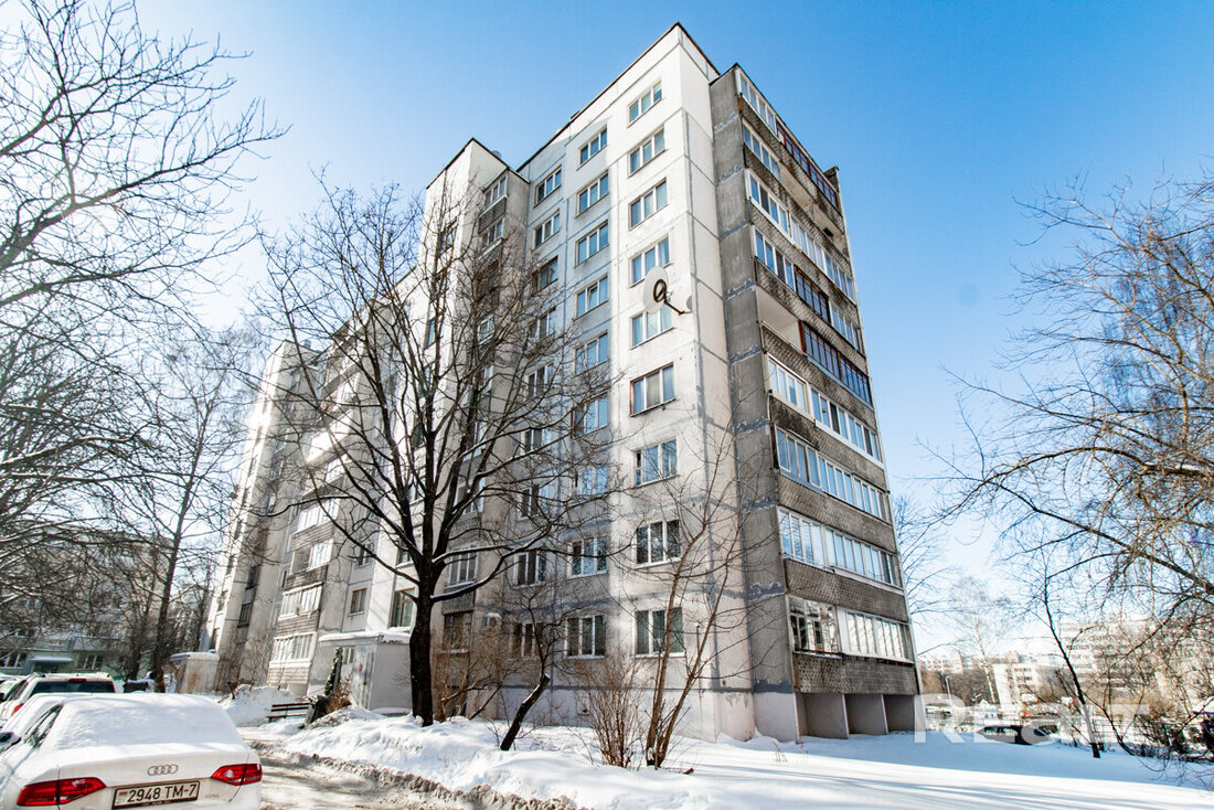 Однокомнатная квартира в десяти минутах пешком от станции метро «Малиновка». Девятый этаж девятиэтажки по адресу Наполеона Орды, 25. Над квартирой есть техэтаж. Дом построен в 2008 году. Выглядит вот так.