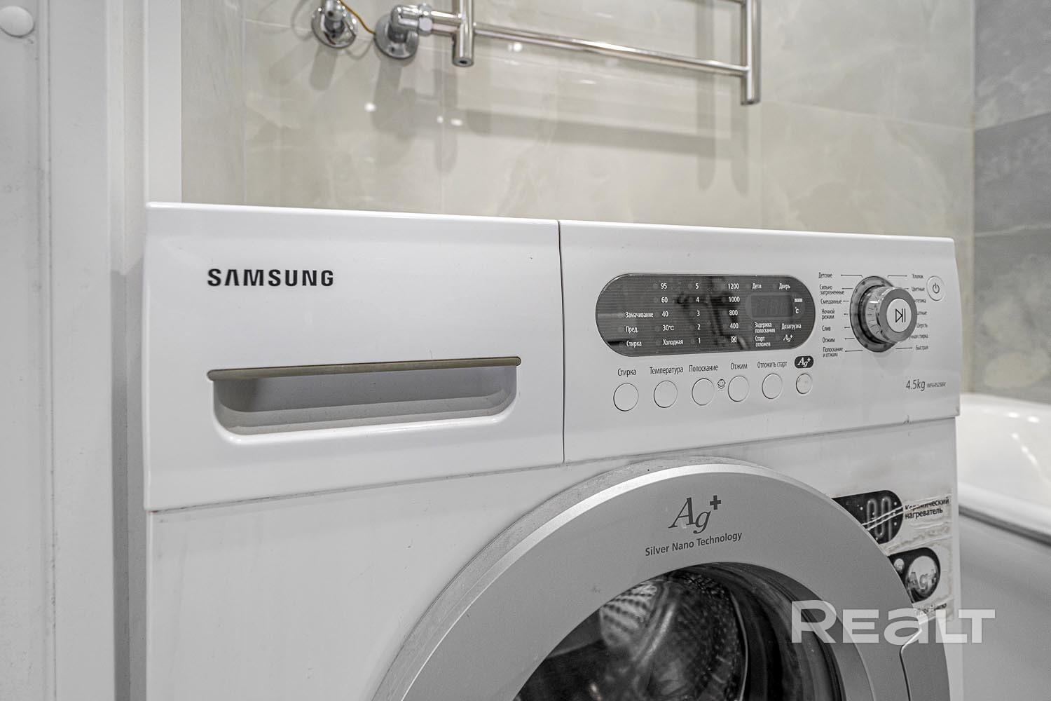 Санузел раздельный. Установлена ванна и подключена стиральная машина с вертикальной загрузкой.