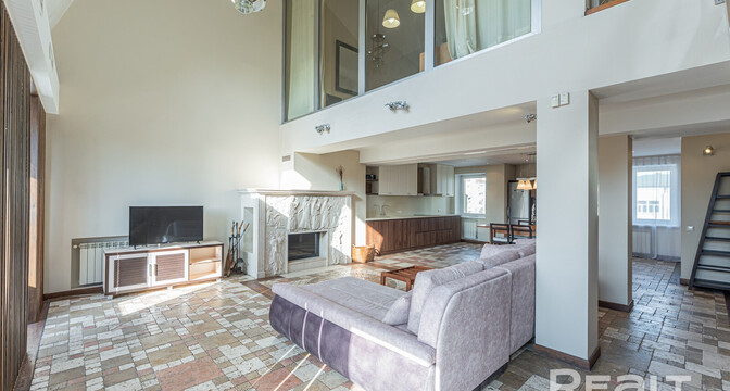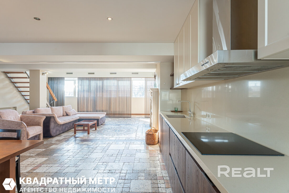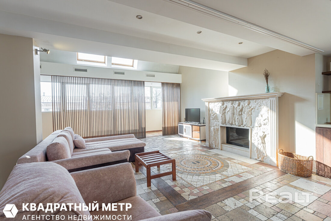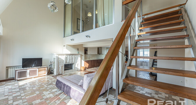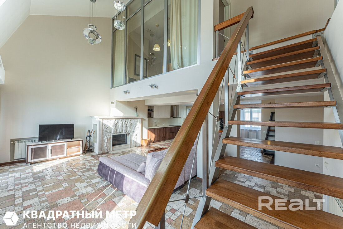 По интерьеру и масштабу эта квартира больше напоминает серьезный загородный дом — здесь два этажа, почти 170 квадратов площади и свой собственный выход на крышу. Агент, который занимается продажей, шутит, что это вариант «для богатых и красивых».