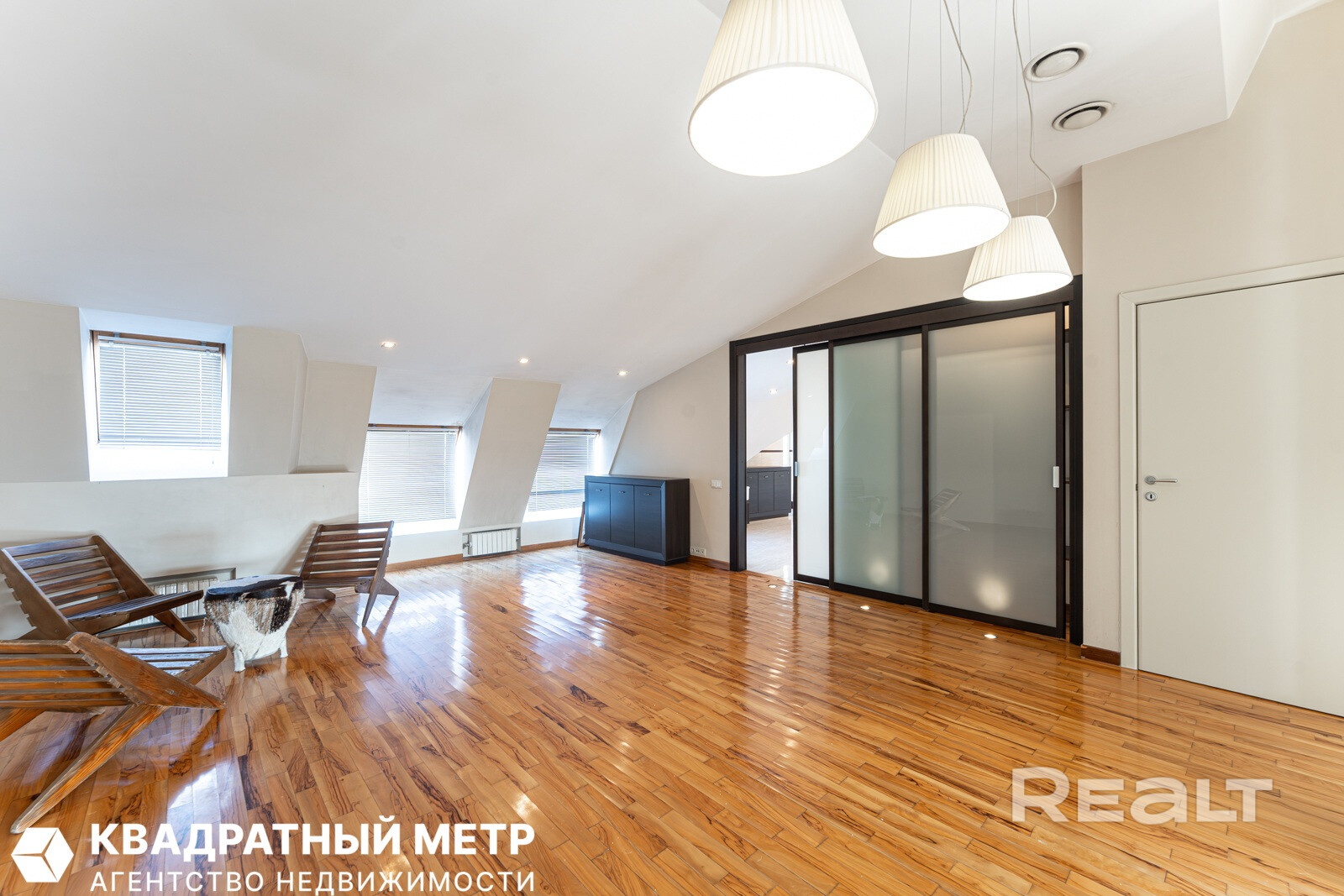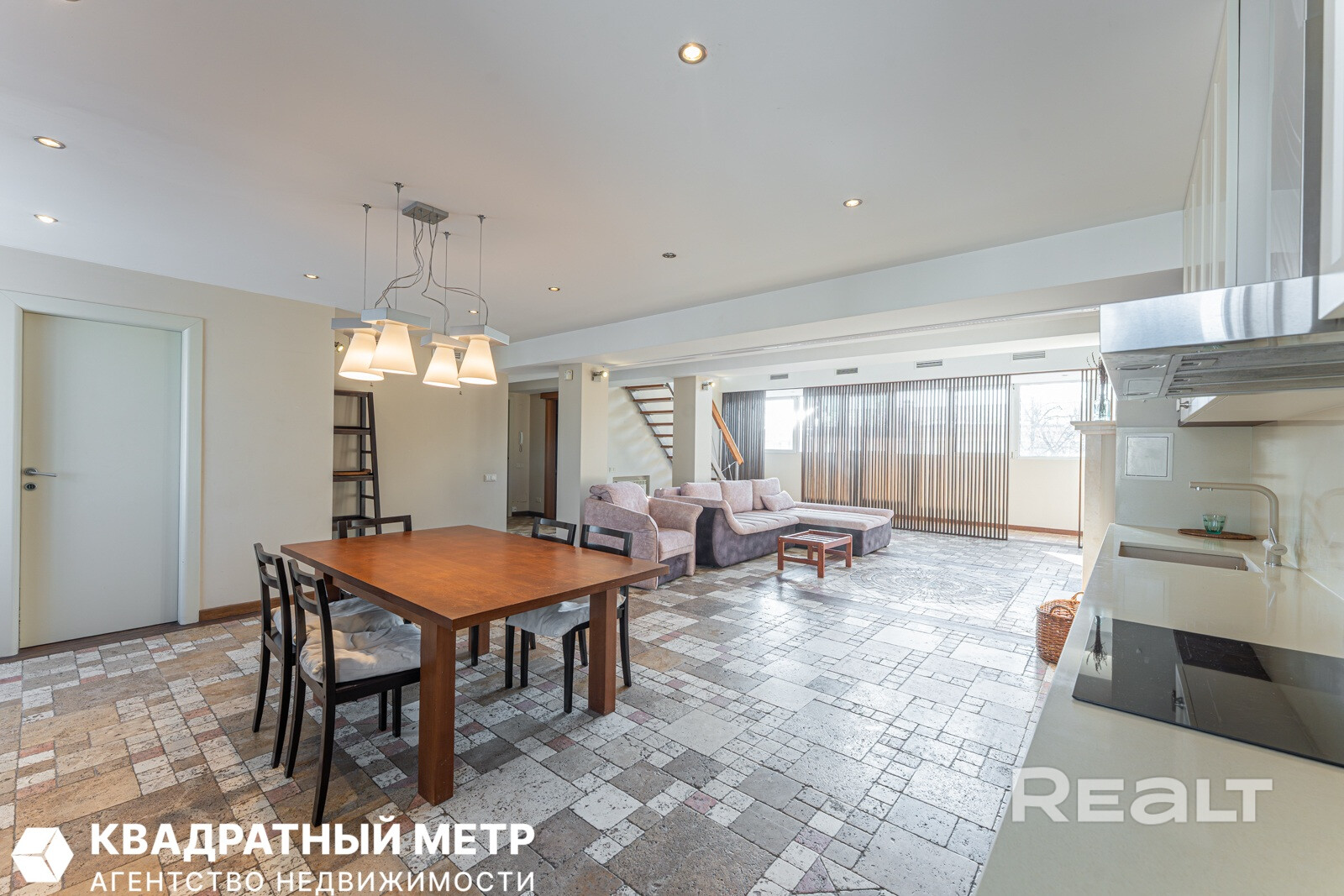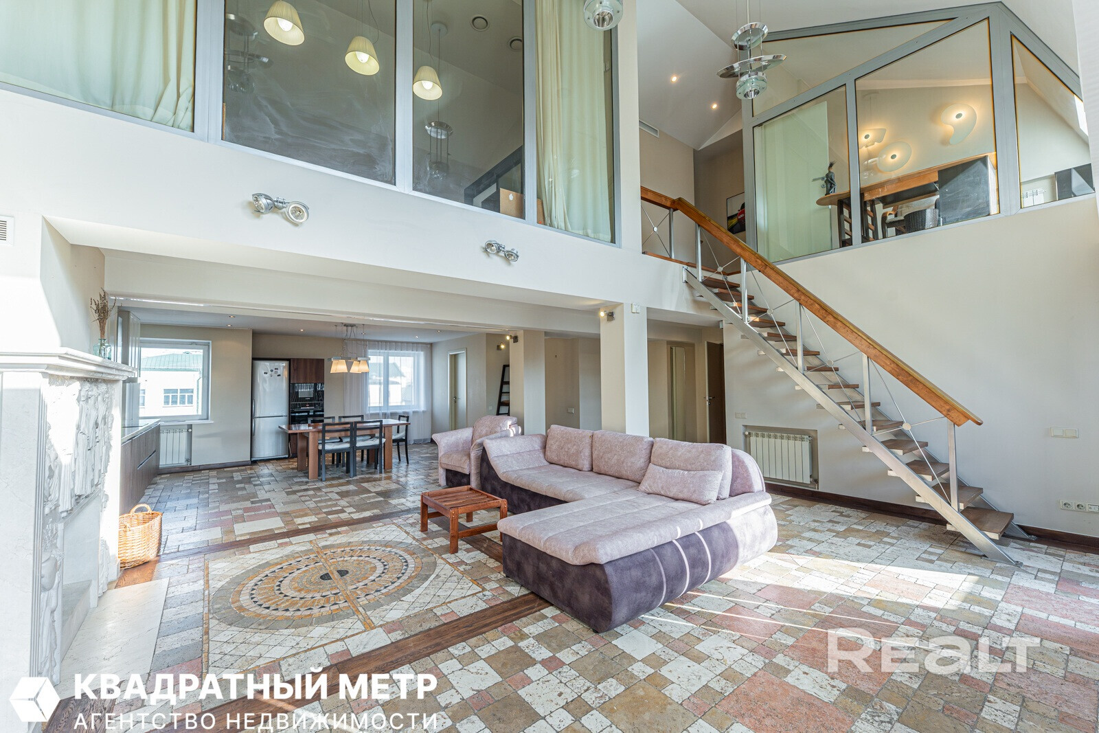 По интерьеру и масштабу эта квартира больше напоминает серьезный загородный дом — здесь два этажа, почти 170 квадратов площади и свой собственный выход на крышу. Агент, который занимается продажей, шутит, что это вариант «для богатых и красивых».