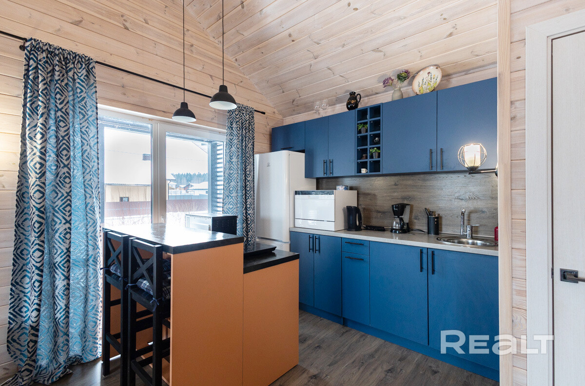 Каркасный дом, выставленный на продажу, был возведен в 2020-м году. Внутри и снаружи дома — имитация бруса. Дерево пропитано Teknos для долговечности и обработано огнебио-составами. В стенах и крыше — утеплитель 150 мм, в полу — 200 мм. Кровля покрыта металлочерепицей, в окна вставлены стеклопакеты с ламинацией и москитными сетками.