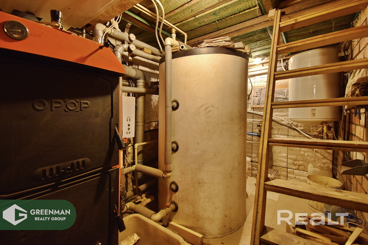 В доме установлены два котла: один на твердом топливе, второй — электро-котел. Также работают 12 радиаторов и камин. Температуру во флигеле поддерживают с помощью печки и электрообогревателя.