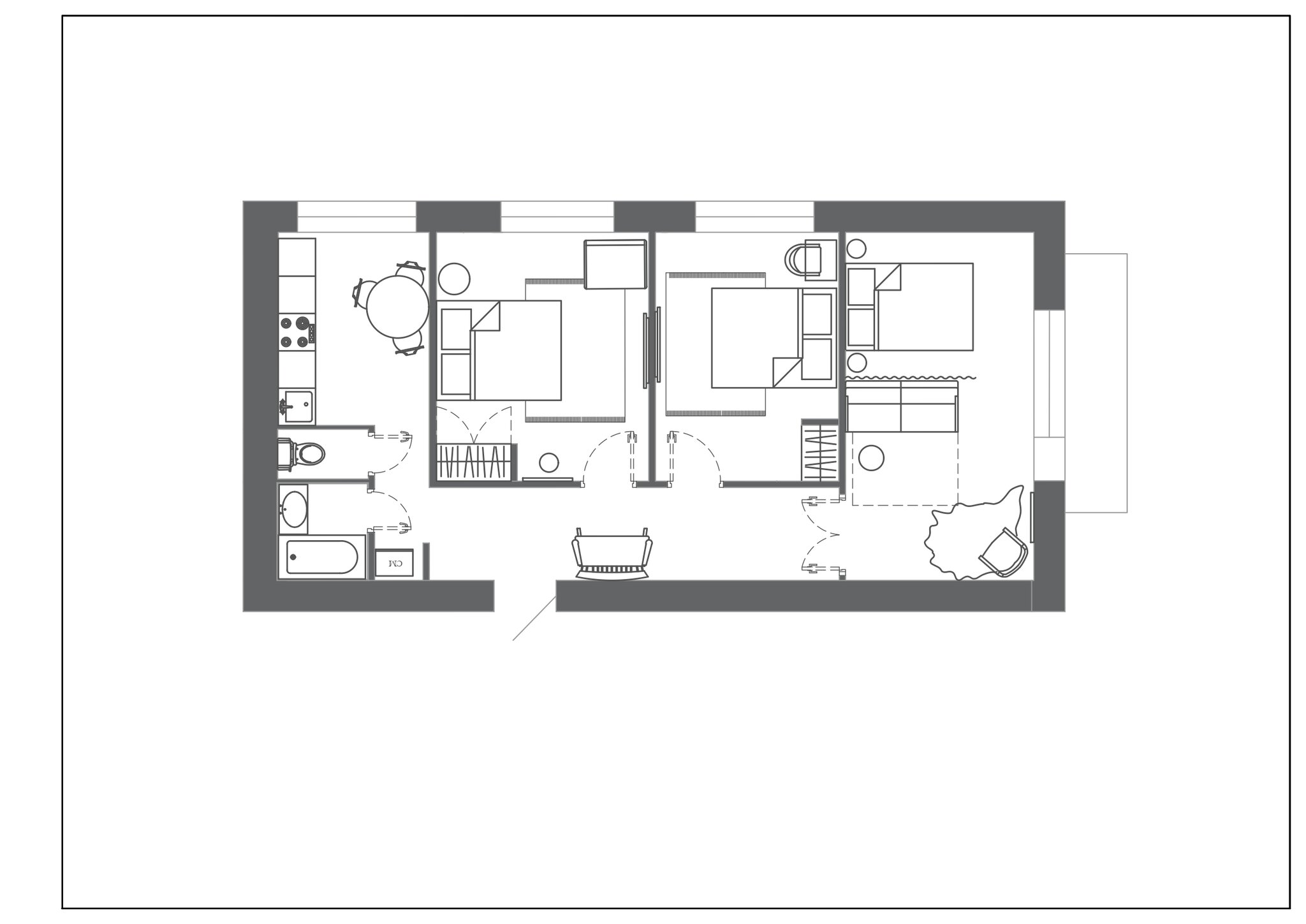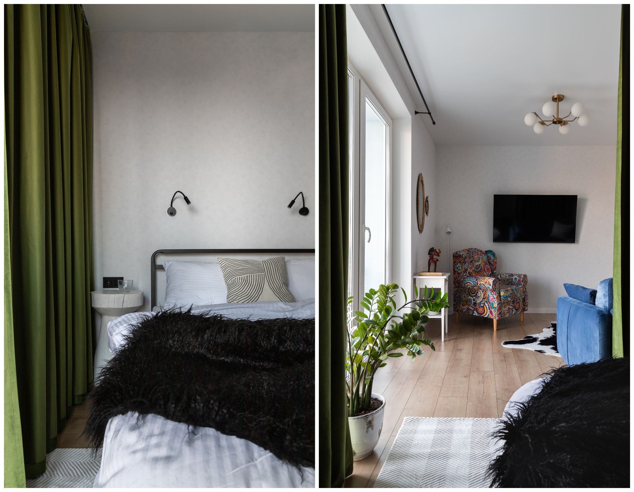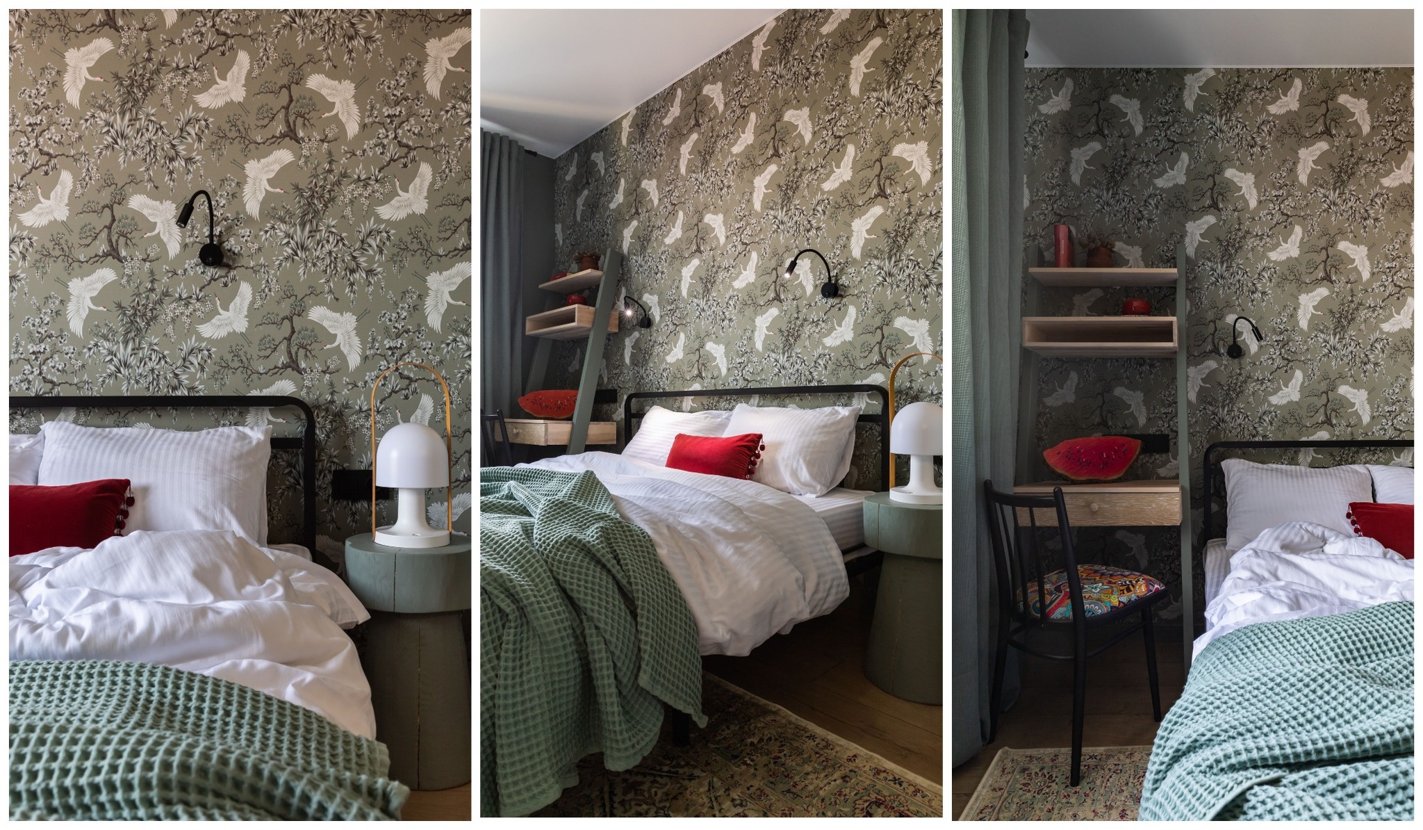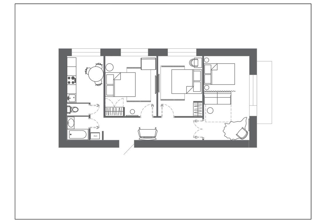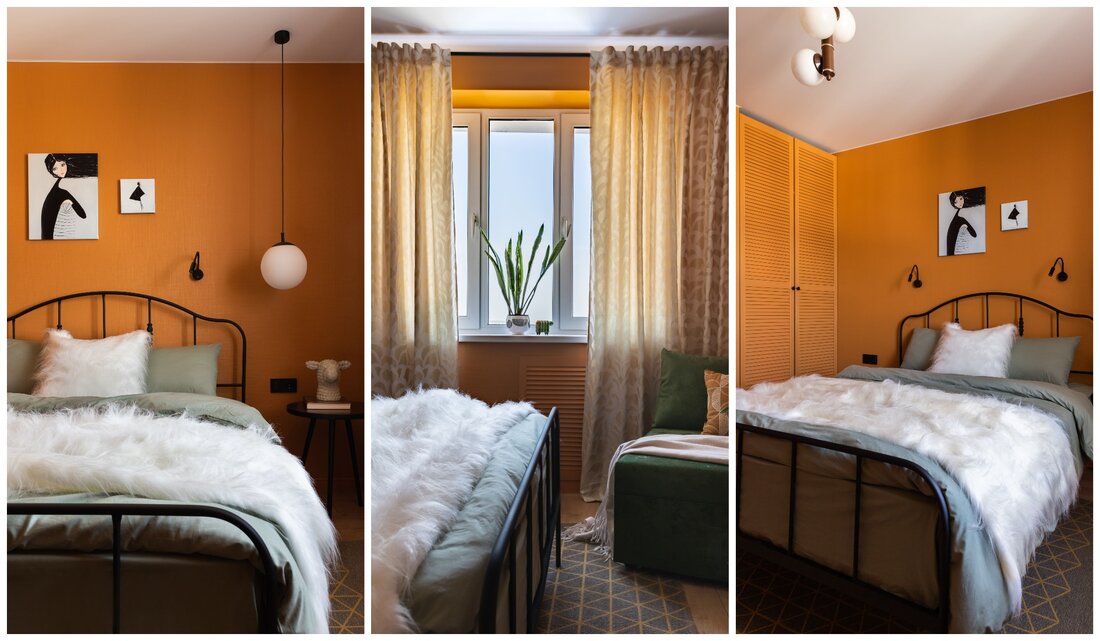 Так как квартира для короткого пребывания, не нужно было создавать большие зоны хранения вещей. В комнатах стоят открытые вешалки и небольшие шкафы. Вообще, брендовые тут лишь кровати и диван. Остальное собственники трешки собирали сами.