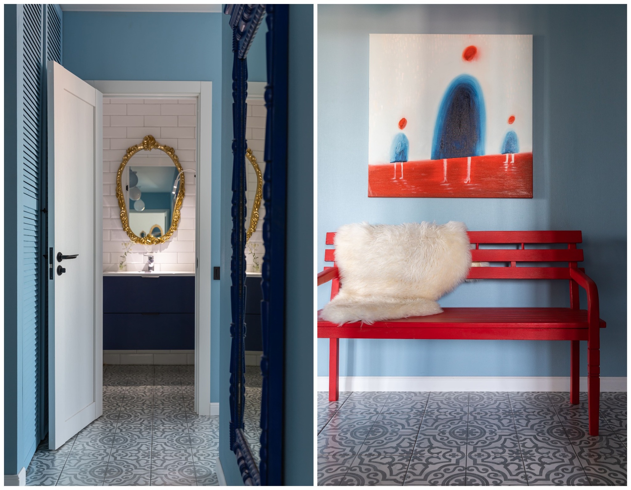 — Детали для кухонного гарнитура, стола, тумб, шкафов и скамьи заказывали на распиле. По нашим расчетам, вышло в 3−4 раза дешевле, чем покупка готовой мебели. Таким образом, на обои, краску, плитку, пол и другие материалы ушло не более 7 тысяч долларов, — рассказывает Инна. — Реечные двери шкафа приобретали в обычном строительном магазине. Эту же основу брали для декоративных коробок под батареи. Лишь кухонные стулья пришлось везти специалисту на реставрацию.