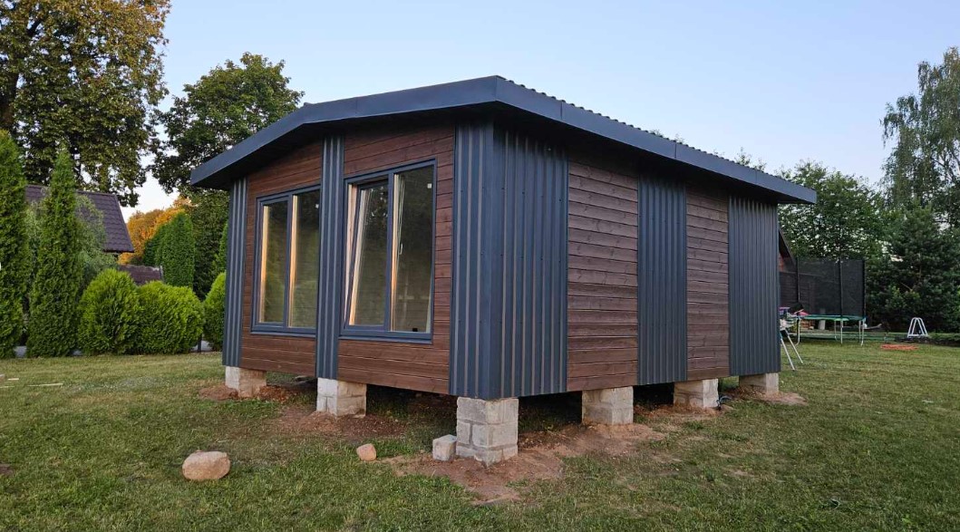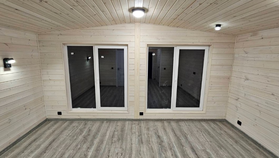 Модульные дома небольших размеров для постоянного проживания стоят дороже. Вот, например, «Терем Запад» предлагает варианты от 50 тысяч рублей (цены приводим без учета доставки, монтажа). Все модули изготавливаются на заводе и собираются на месте, что позволяет значительно сократить время на строительство. Дома поставляются уже с утепленным контуром, с отделкой вагонкой и имитацией бруса, с ламинатом на полах, окнами и дверями.