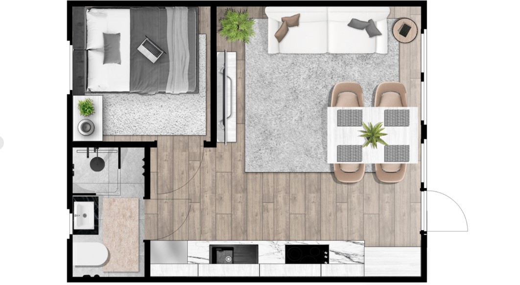 Вот, например, дом 6х4,82 метра с гостиной, санузлом и спальней за 52 872 рубля: