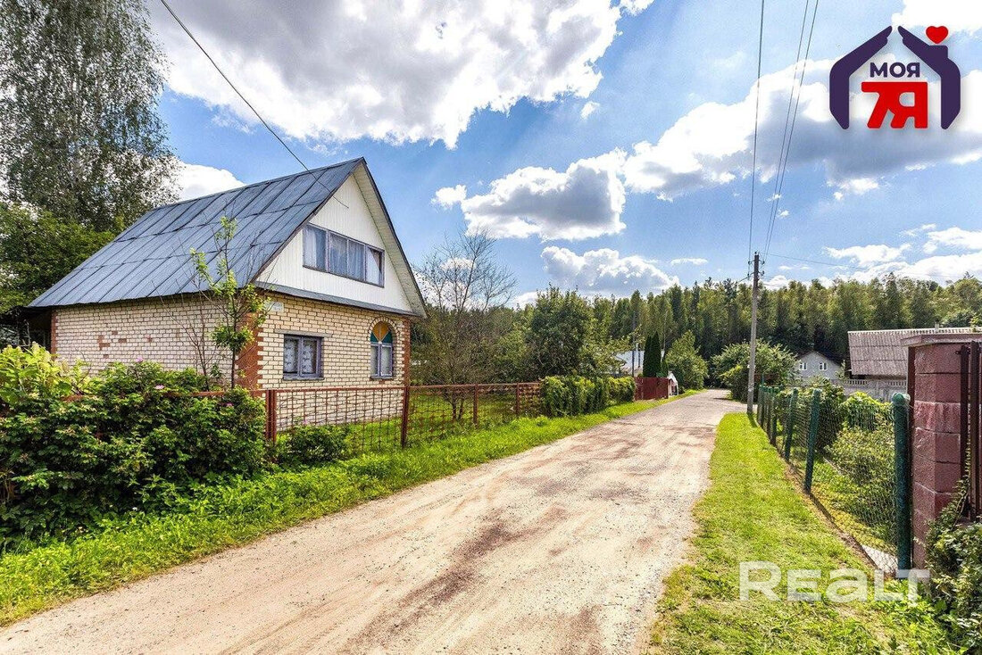 Располагается дом в садовом товариществе «Спутник». Это — Минский район, 13 километров от МКАД, Могилевское направление. Дачный поселок со всех сторон окружен лесом. К дому ведут хорошие подъездные пути. От станции метро «Могилевская» сюда ходит автобус № 260.