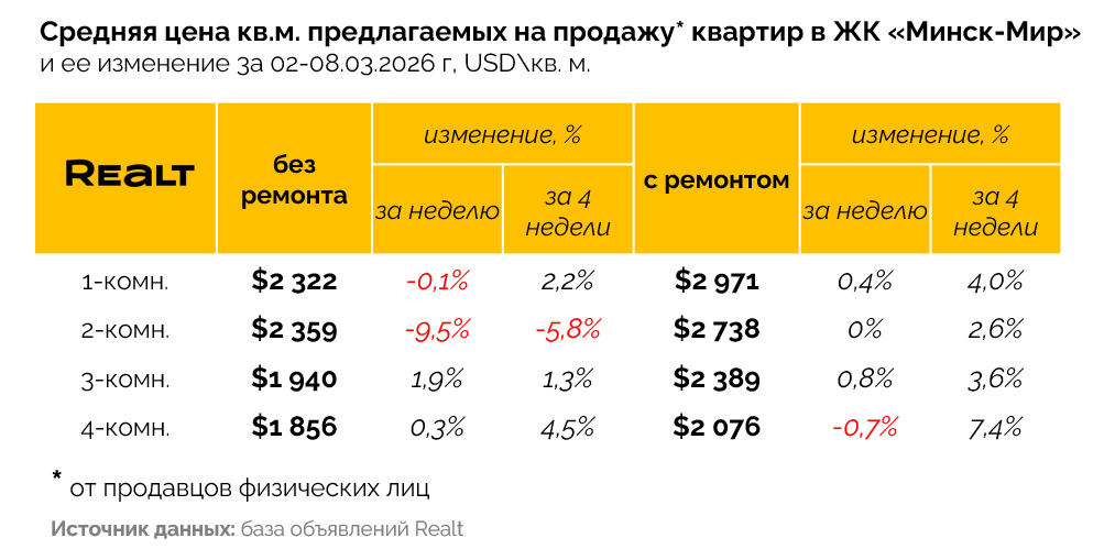 На фоне уже давно сформированного интереса к компактному и современному жилью в центре города и возле метро, а также на фоне сужения предложения от застройщика «Минск-Мира» и постоянно поднимающихся им цен на строящиеся квартиры, продавцы квартир в этой локации поступают точно также — ежемесячно поднимают цены.