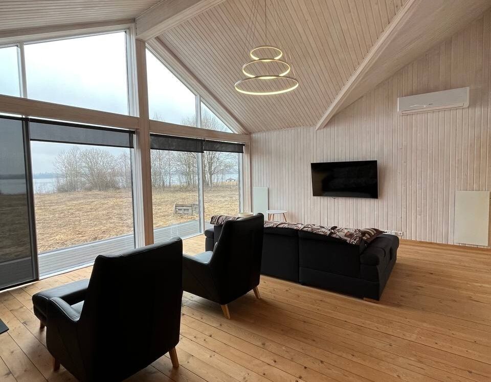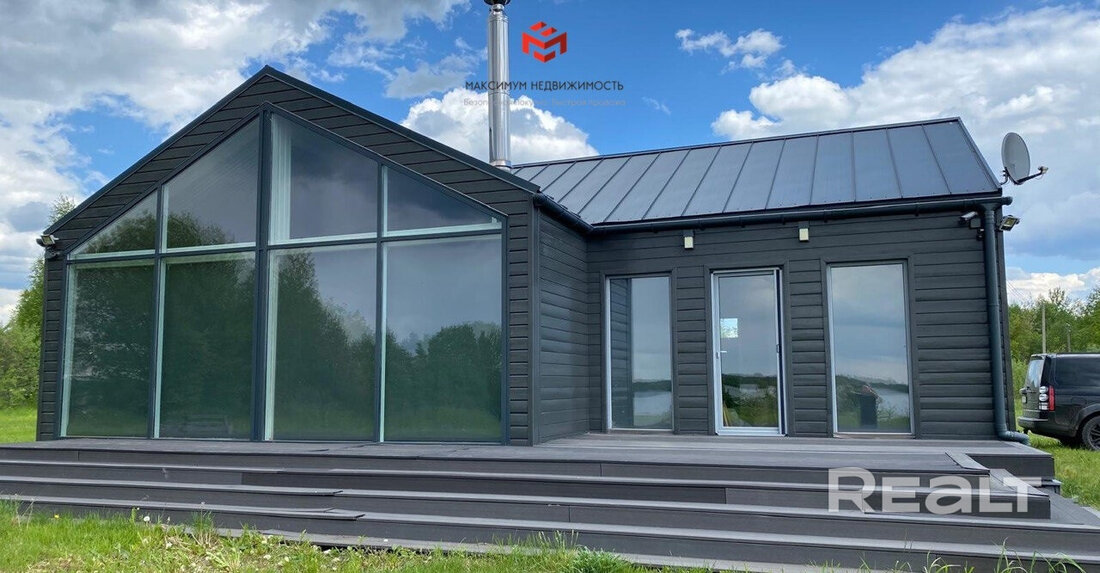 На первой береговой линии у огромного Лепельского озера продается дом в скандинавском стиле: удобная планировка, природные материалы в отделке, камин и виды на водные просторы из панорамных окон. Он полностью готов к проживанию в любую пору года, есть мебель, бытовая техника, полноценное отопление с дистанционным управлением. На берегу — баня и беседка. А сколько это все стоит?
